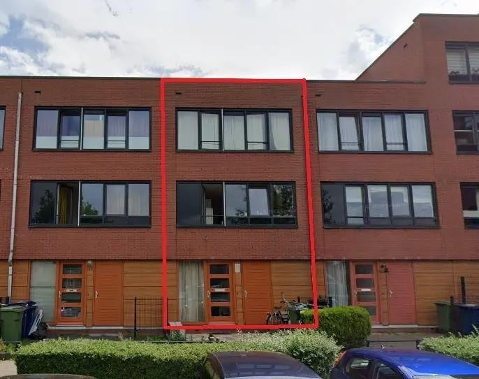 De beschikbare kamer bevindt zich op de eerste verdieping aan de achterzijde van de woning met uitzicht over de groenstrook achter de woning.
