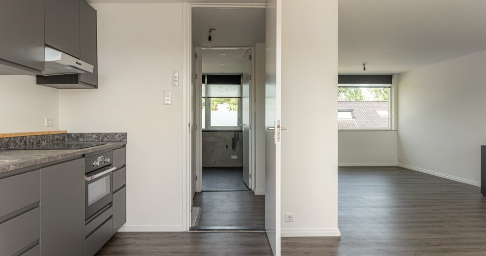 Indeling: gezamenlijke hal met toilet en trapopgang, entree appartement met eigen afsluitbare ingang. De ruime woonkamer met open keuken is voorzien van diverse apparatuur en geeft toegang tot het balkon. Via de vaste trap is de slaapkamer bereikbaar, met een dakkapel en grote dakramen is de slaapruimte ruim en licht.
