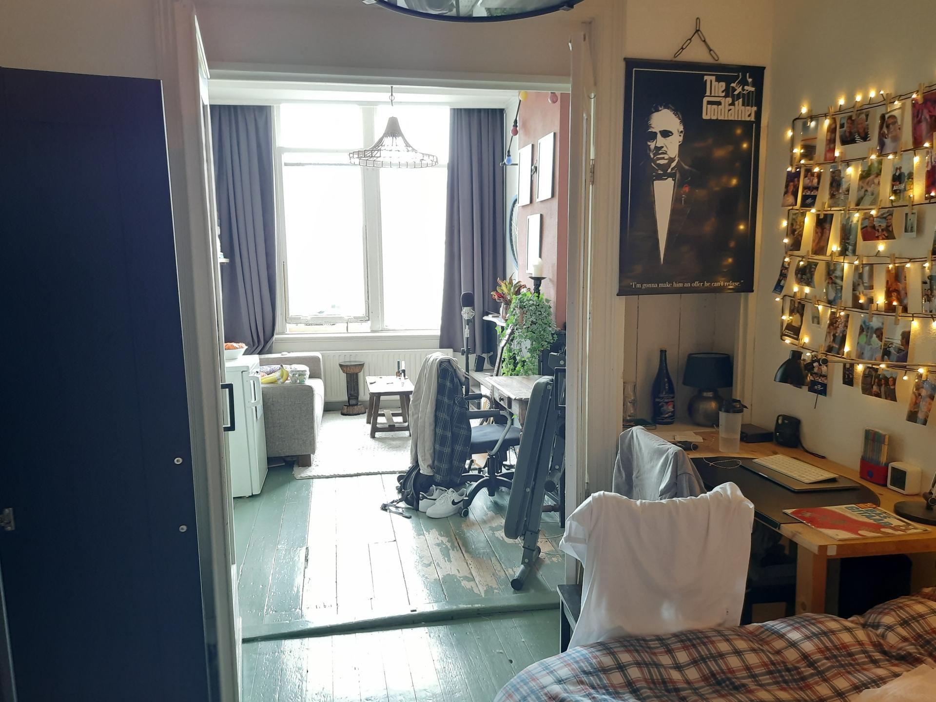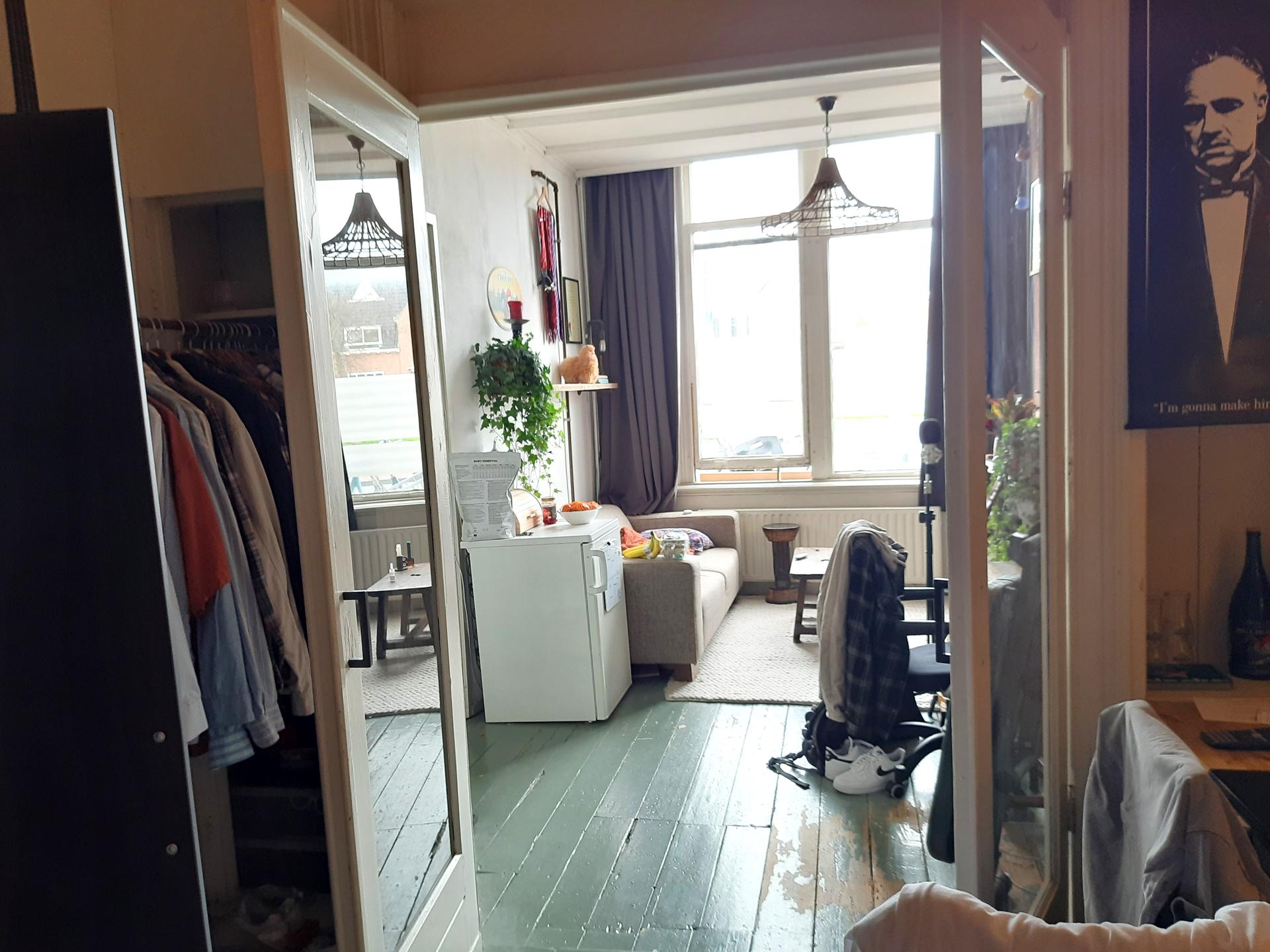 De keuken deel je met 2 en de douche en toilet met 3 andere personen. Huurprijs 900,- inclusief G.W.E en internet.