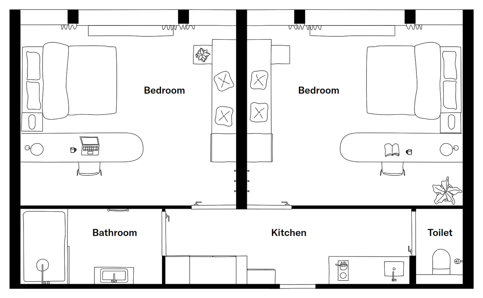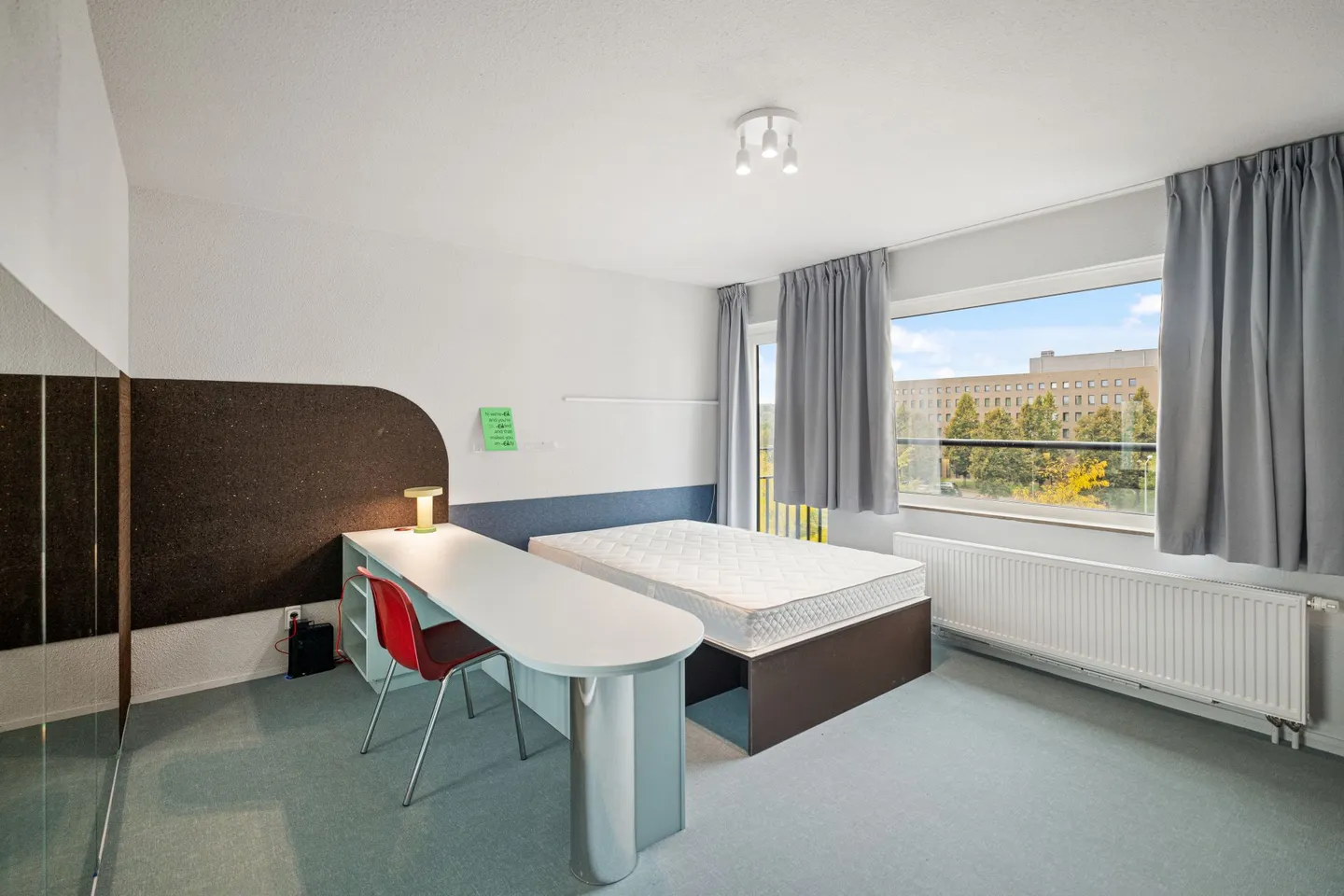 Renting and sharing an apartment with a friend? The fully furnished 'Double-Ed' apartment in the modernized campus complex The Ed has two bedrooms with double beds (), including mattresses, desks with chairs, sufficient storage and wardrobes, and high-speed internet. Together you share a luxury kitchen (with built-in appliances), toilet, bathroom with shower and sink. The apartment is located on the 4th floor (west side).