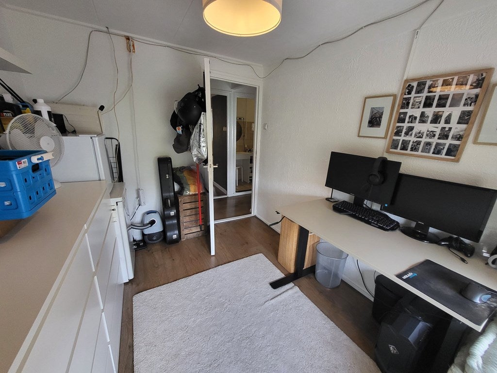 De badkamer is voorzien van een douche, wastafel, toilet en de aansluiting voor de wasmachine. Het appartement beschikt tevens over een ruim dakterras van circa 14m2 wat vanuit de woonkamer te bereiken is.