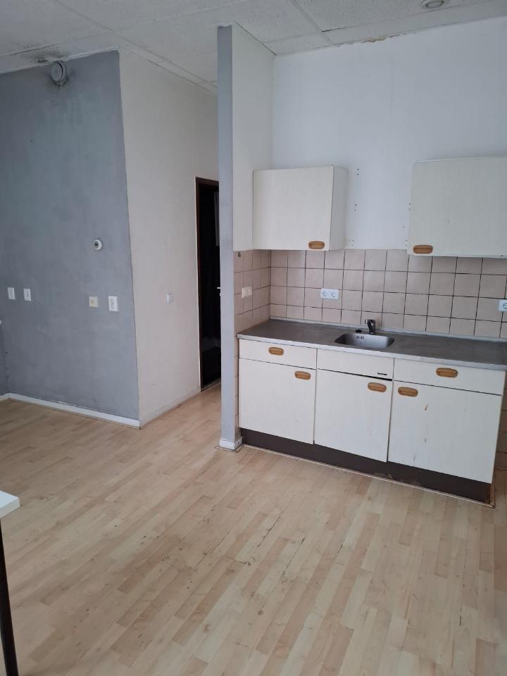 Ook voor een student. Woonkamer met open keuken, badkamer en 1 slaapkamer.