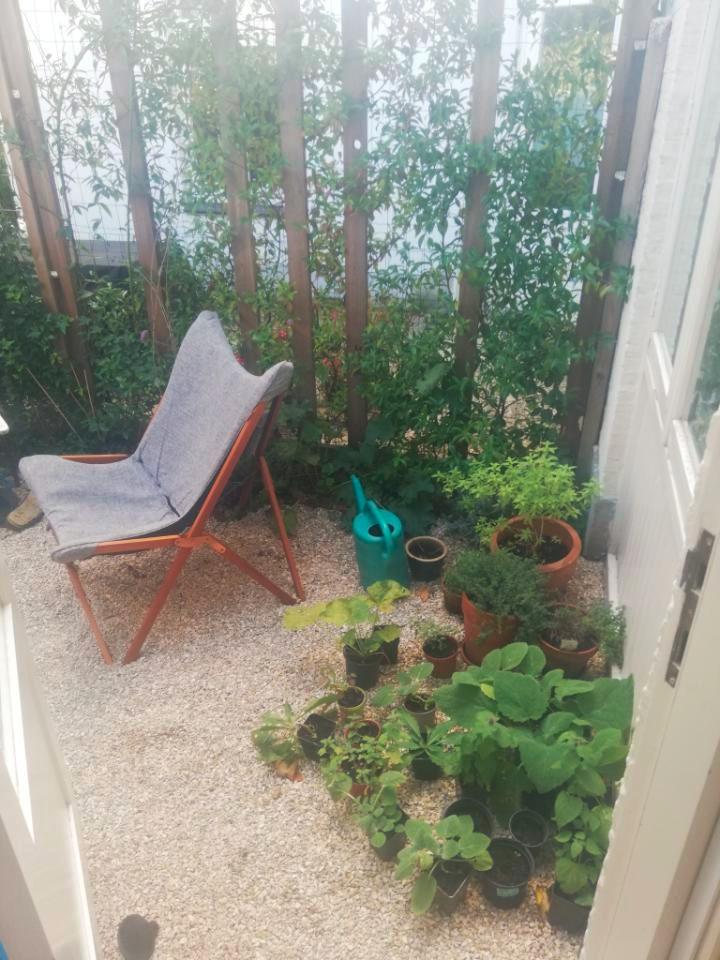 Het appartement bestaat uit twee ruimtes: voorin een slaapgedeelte en achterin een woongedeelte met open keuken en deur naar de tuin. De buurt is leuk en levendig, vlakbij de Weimarstraat. Tram 12 stopt voor de straat, en tram 2 en 4 zijn een paar minuten lopen. Ongeveer 10-15 minuten fietsen naar centrum en strand.