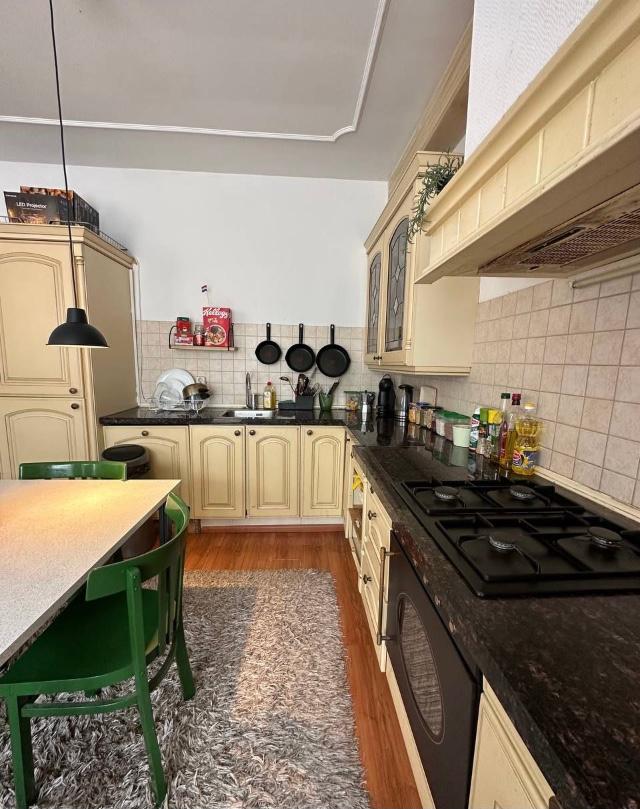 Laminaat , mooie grote keuken, vitrage, mooie badkamer, luxe douchecabine.