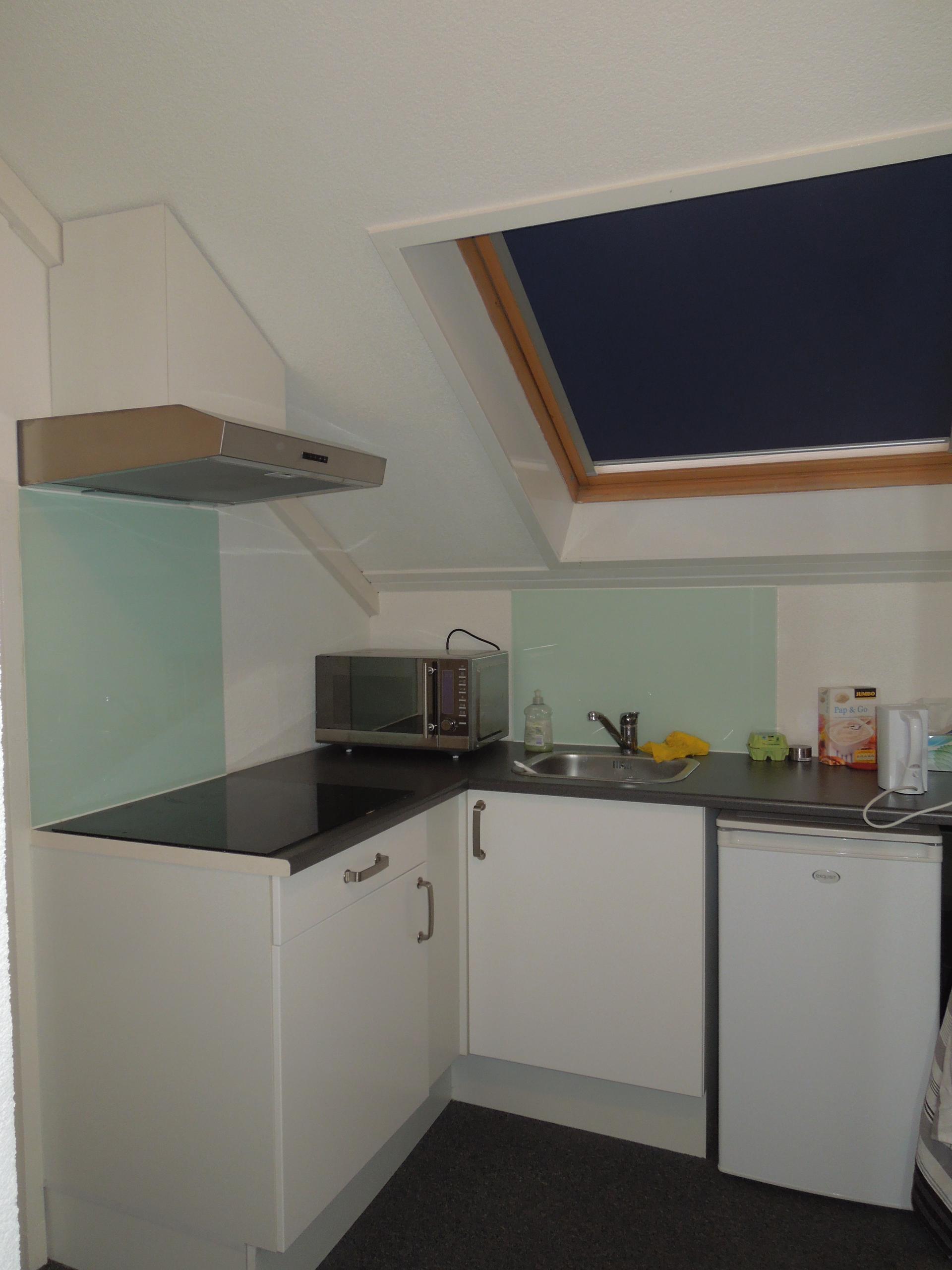 Studio, bestaande uit: 2 kamers waarvan 1 met balkon, keuken, douche/toilet.