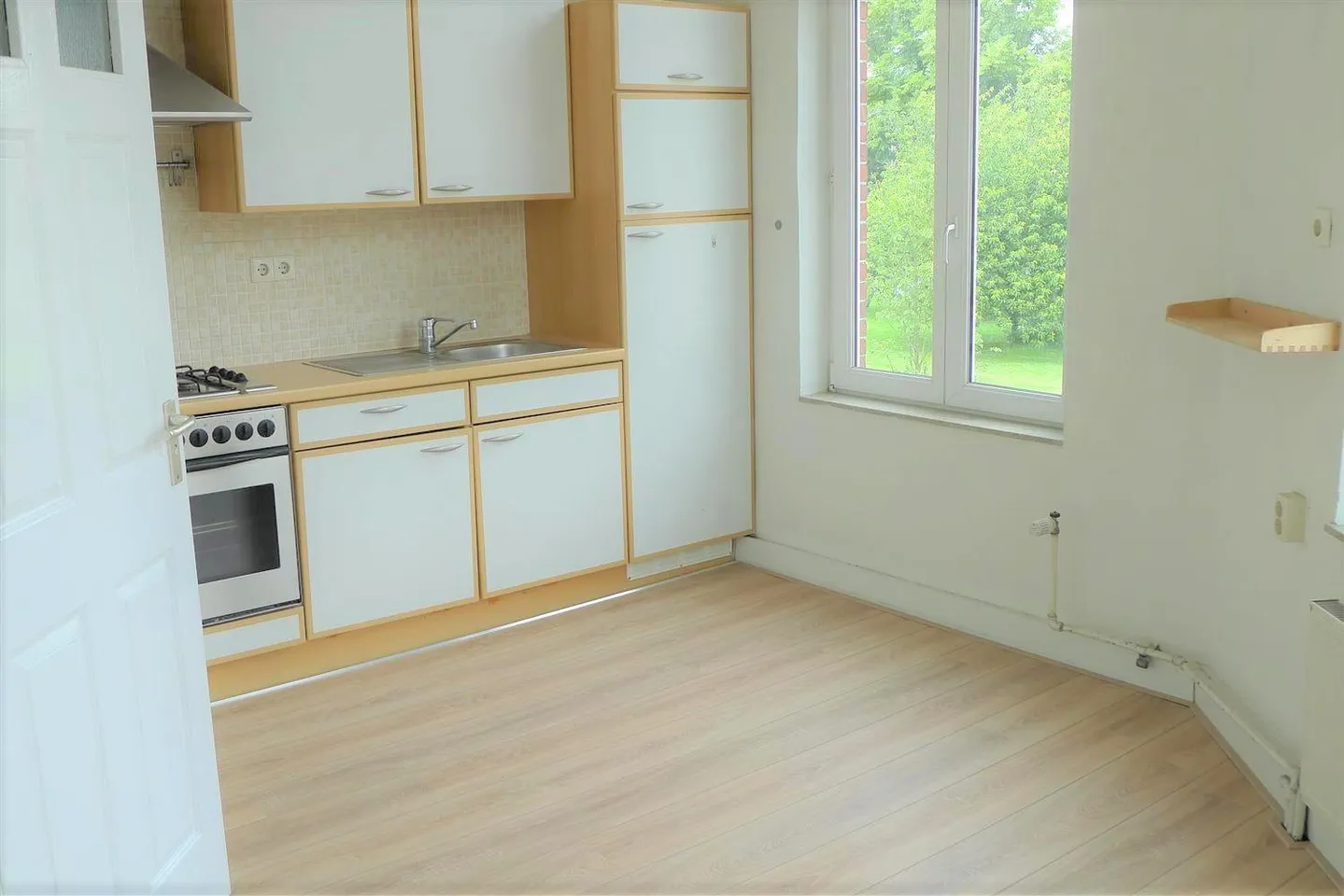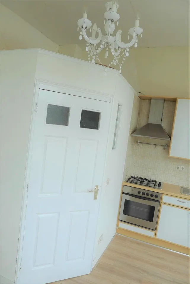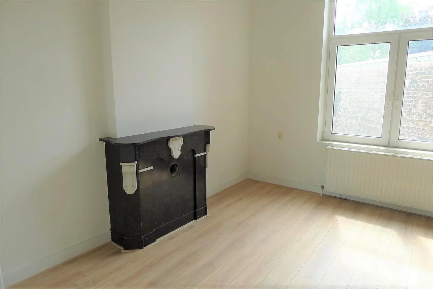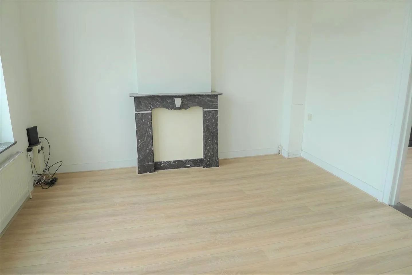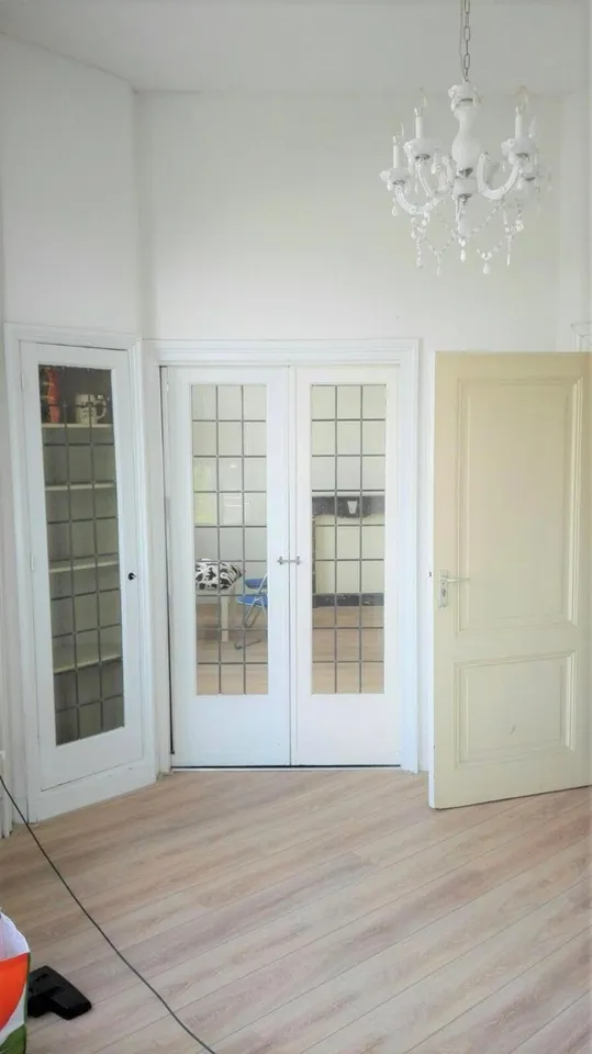 Nice apartment situated on the first floor with a large living room with marble fire places and an ornamented ceiling, an open kitchen with equipment, spacious bedroom and a bathroom with a shower, sink and toilet.