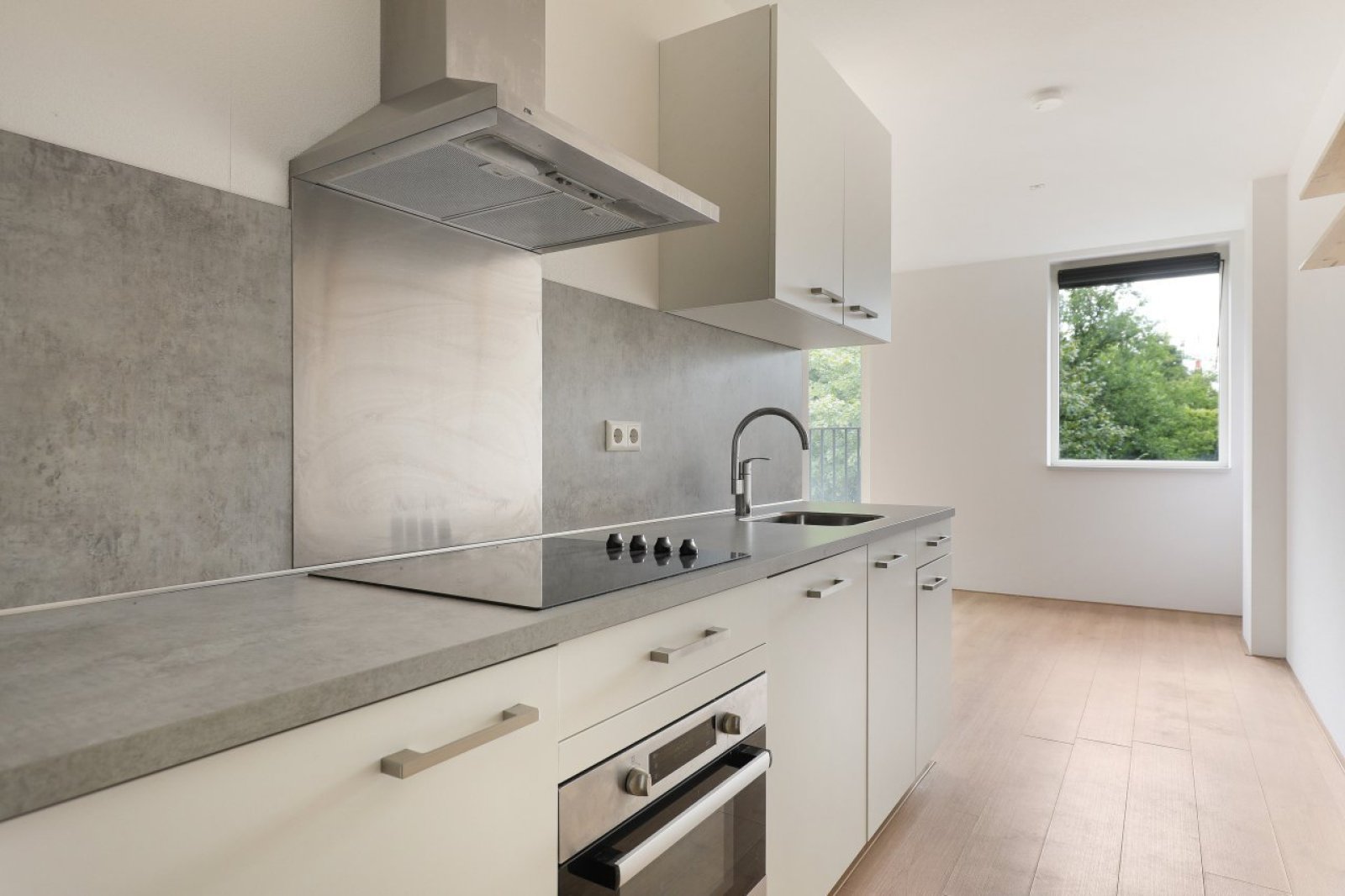 Het appartement beschikt over een lichte woonkamer met grote raampartijen, een open keuken voorzien van moderne inbouwapparatuur, een ruime slaapkamer en een nette badkamer met douche, wastafel en toilet. Daarnaast is er een aparte berging en een eigen fietsenstalling aanwezig.