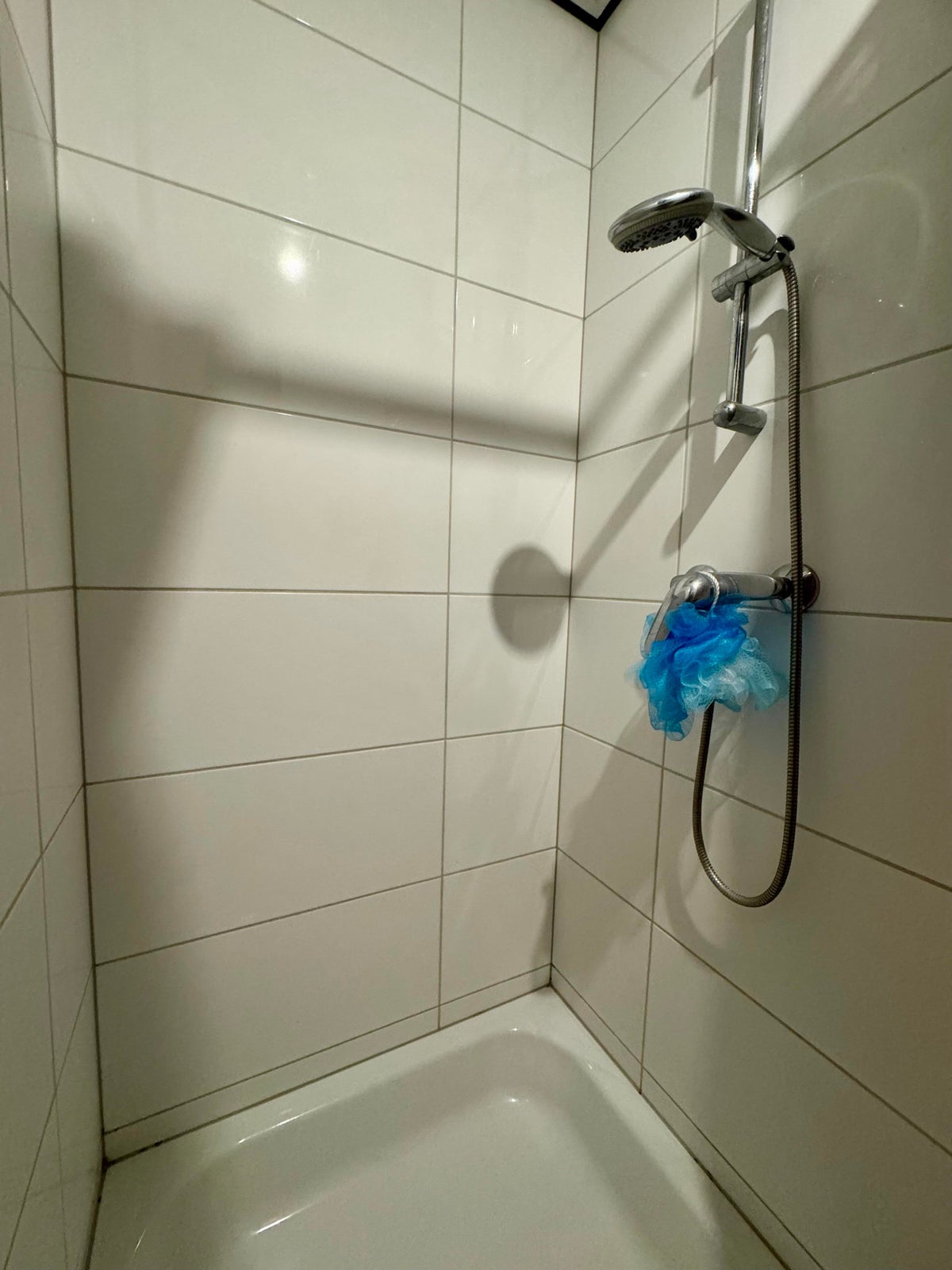 De badkamer is bereikbaar via de slaapkamer en voorzien van een douche. Het toilet is separaat gelegen.