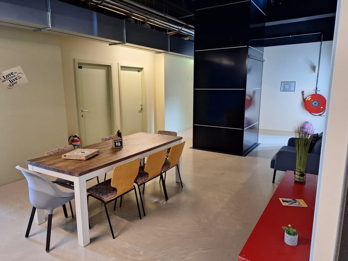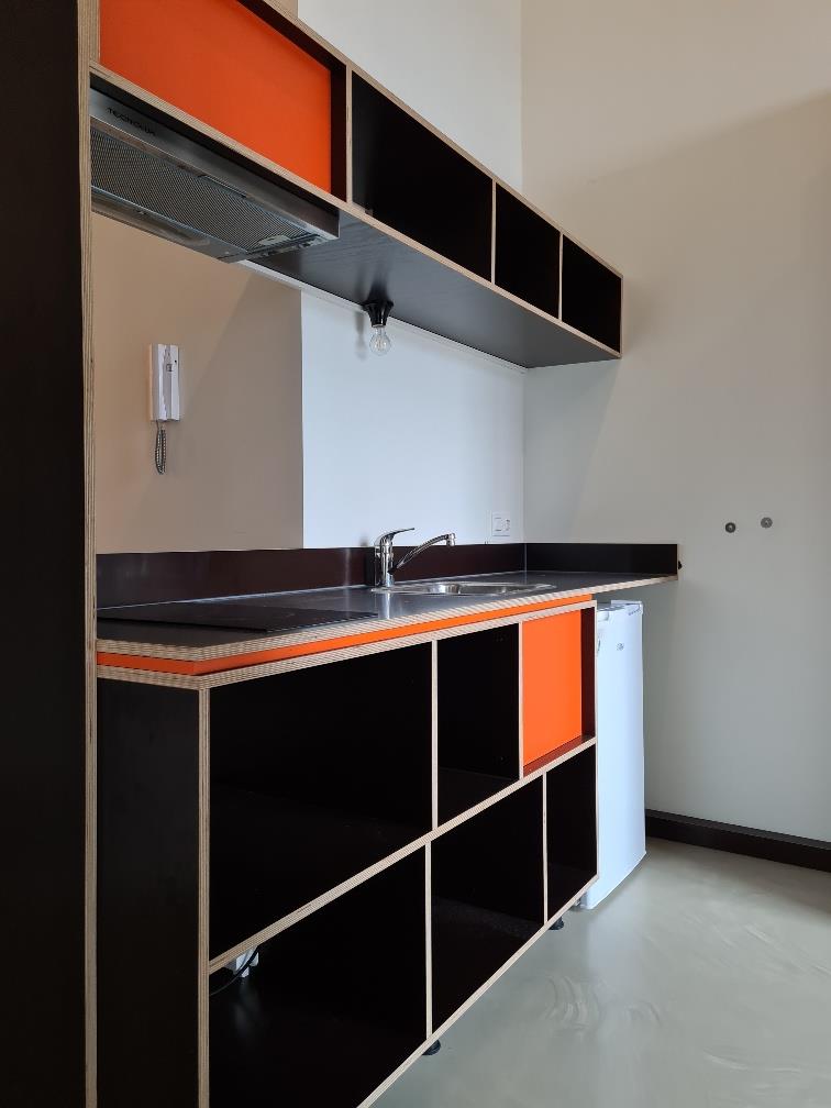 Dankzij de grote ramen geniet je van veel lichtinval. De studio beschikt over een eigen keuken en badkamer. Bovendien is er een comfortabele hoogslaper met matras aanwezig.