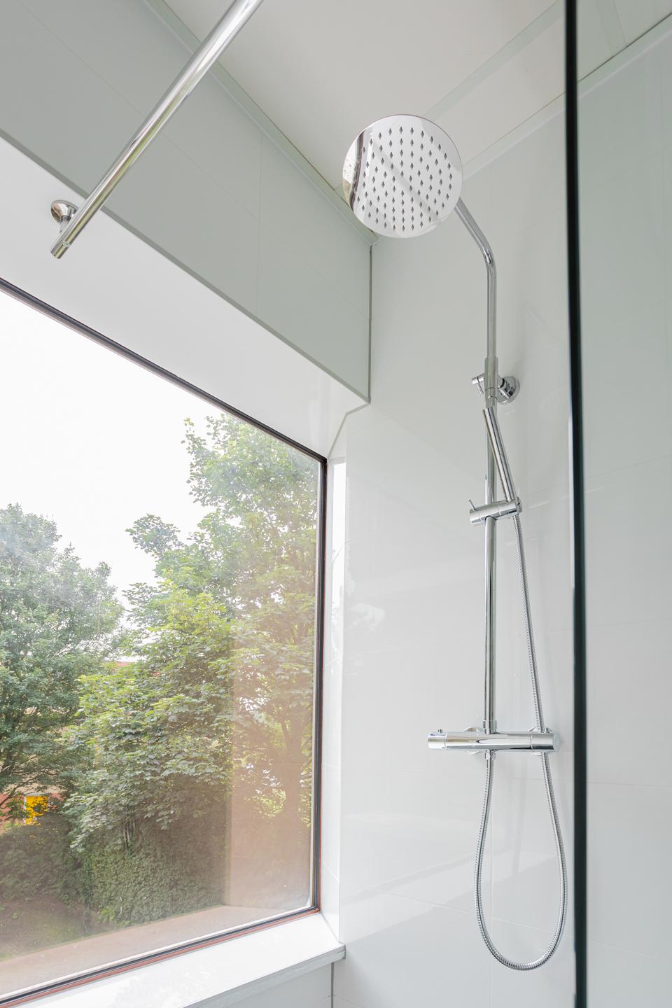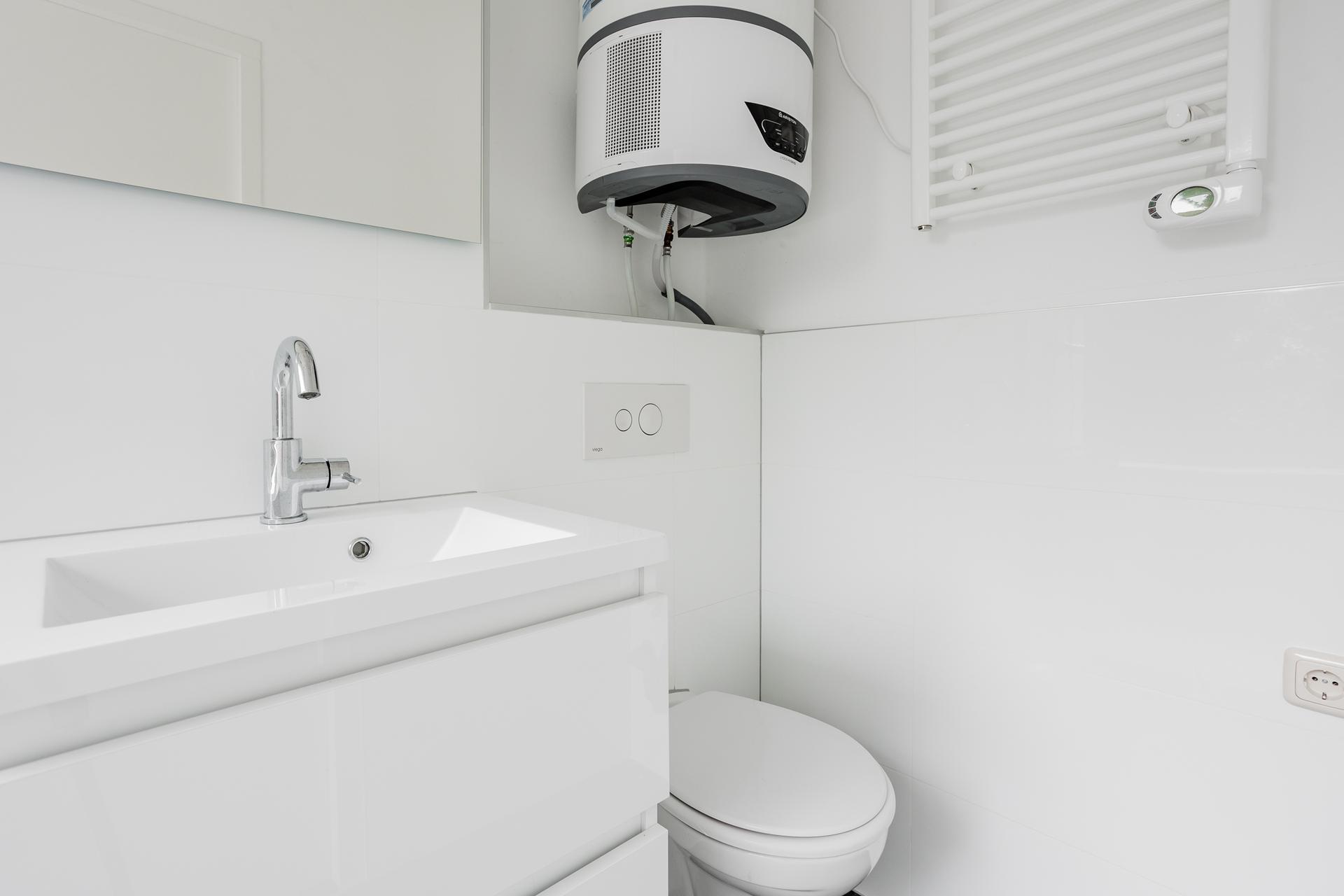 De badkamer is voorzien van een inloopdouche, wastafel, spiegelkast met verlichting en een hangend toilet. De studio is volledig gasloos en wordt verwarmd en gekoeld via een airco/heater. Daarnaast is de woning voorzien van aansluitingen voor tv en internet.