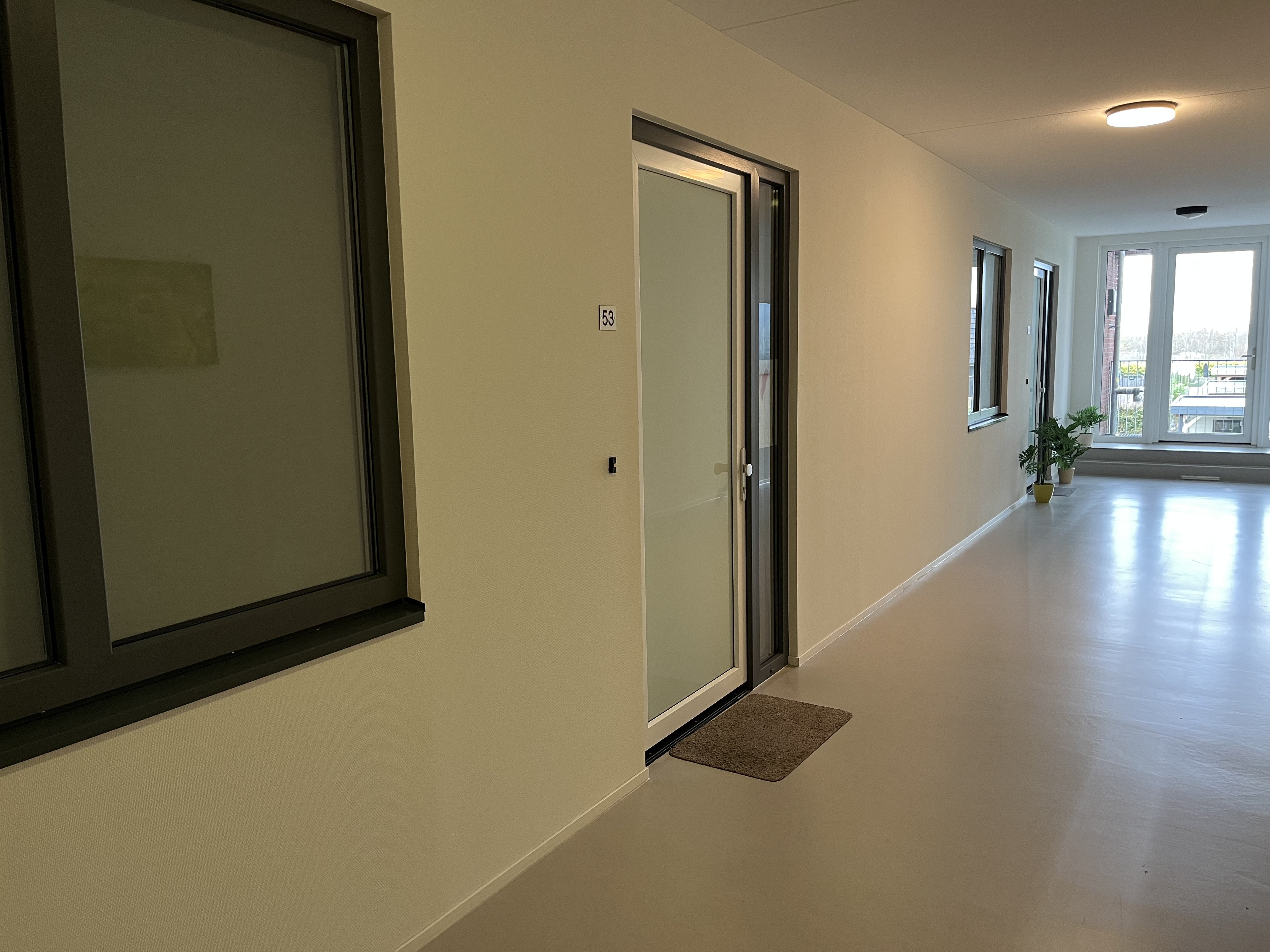 In dit gebouw is tevens het dorpshuis, gymzaal en bedrijfsruimten.Het appartement beschikt over een woonkamer met open keuken, er zijn twee slaapkamers aanwezig. De badkamer is bereikbaar via de slaapkamer. Ook beschikt de woning nog over een apart toilet, een bergruime en een balkon.In Nimmerdor is een bewonerscommissie actief. Op de woensdag wordt er gezamenlijk koffie gedronken.