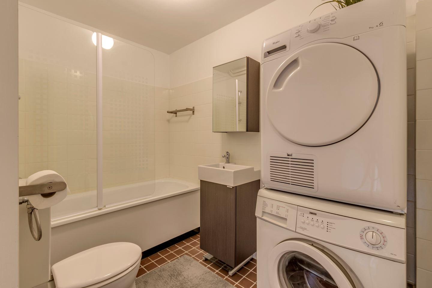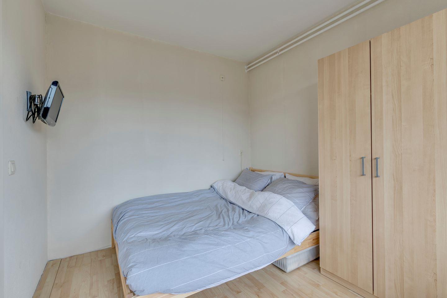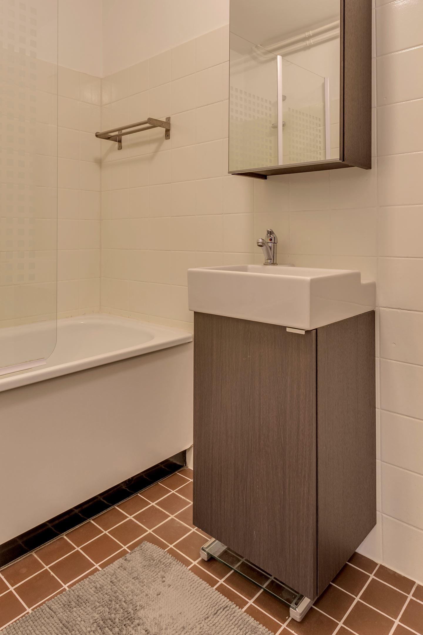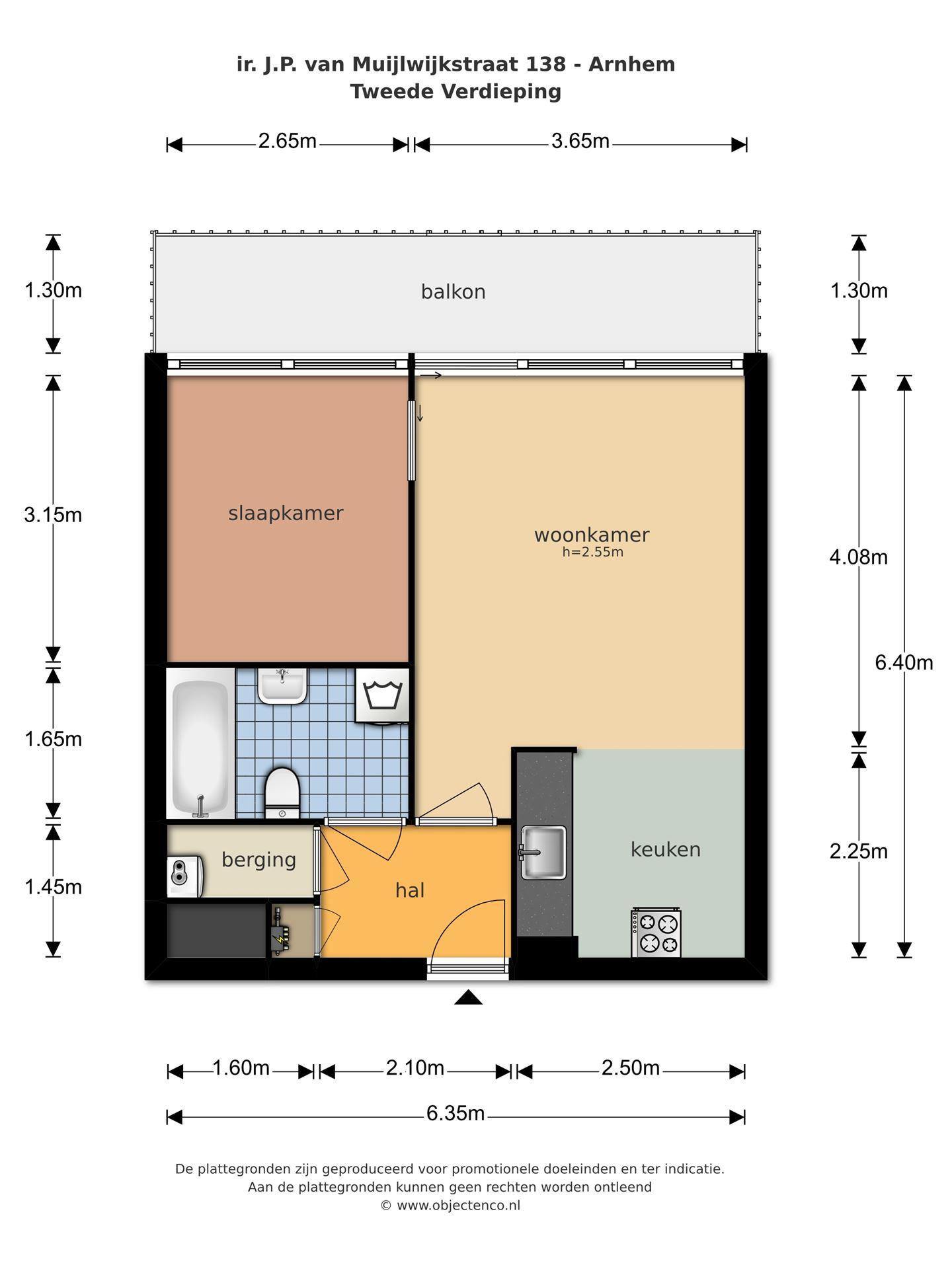 Entree, hal, meterkast, ruime bergkast met cv installatie, badkamer met ligbad, wastafelmeubel, toilet en wasmachine aansluiting, lichte woonkamer met open keuken en schuifpui naar ruim en zonnig balkon op het zuiden. Vanuit de woonkamer is de slaapkamer via een schuifdeur bereikbaar.