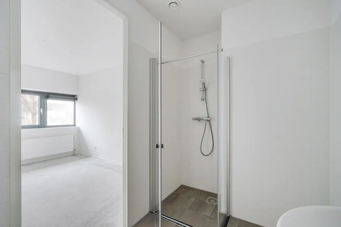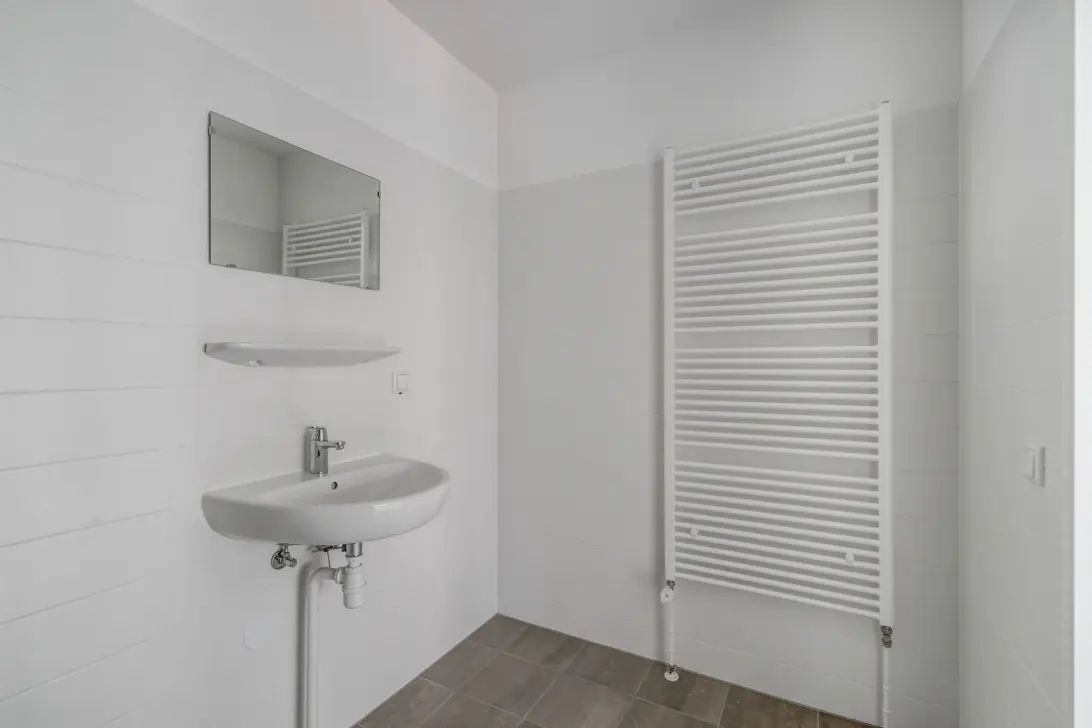 Het appartement 108 C beschikt over een ruime woonkamer met een luxe, complete, open keuken. Vanuit de woonkamer is er toegang tot het balkon. Vanuit de hal heeft u toegang tot de ruime slaapkamer en is de badkamer met wastafel en douche bereikbaar. Verder heeft elk appartement een apart toilet en een berging met een wasmachineaansluiting.