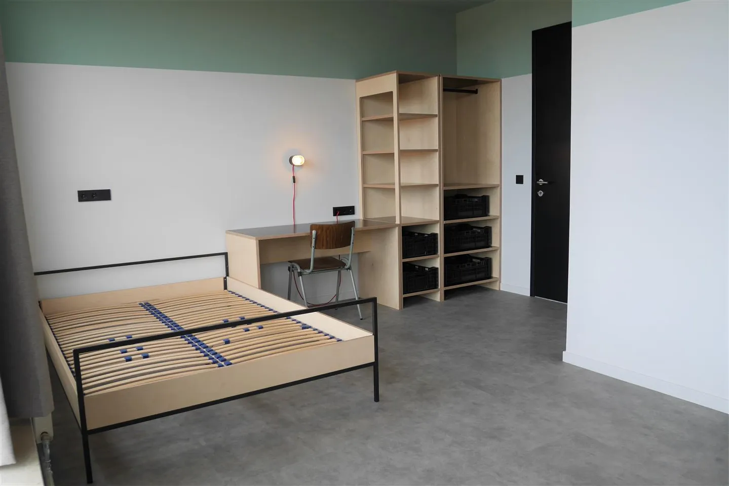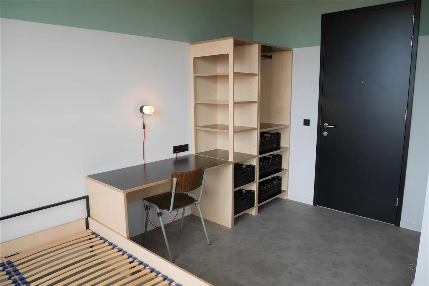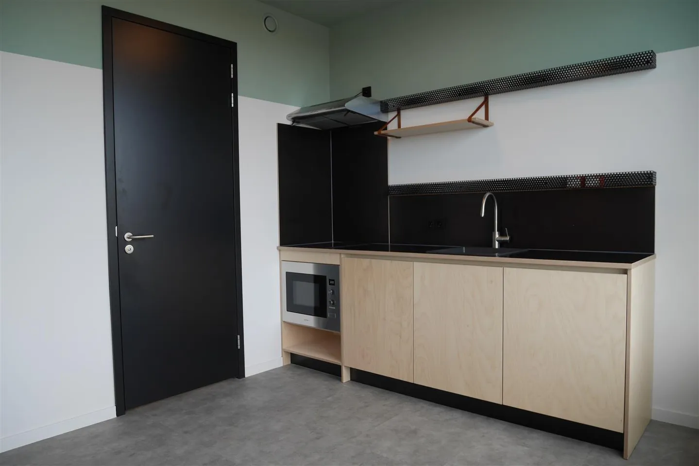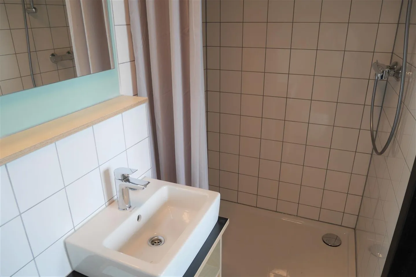 The studio is furnished with a double bed (), modern en-suite bathroom, luxurious open kitchen (incl. built-in appliances), large clothing & storage cupboard, desk with chair and high-speed internet. The studio is located on the fourth floor (south side). See the floor plan for the units location in the building.