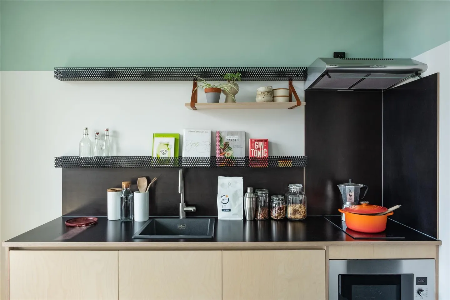 The complex housing 127 residents has all the modern conveniences needed for living, studying, get-togethers and relaxing. There is a large common room on the ground floor with communal kitchen, three study areas, a chill out area, Miele launderette and bicycle parking. Additionally, there is an option to rent a parking space in the underground car park for €50,00 per month. For more information, also visit l.