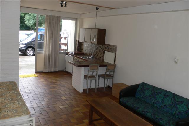 The studio features a private outdoor seating area, perfect for relaxing, and also offers access to a large shared garden of no less than 350 m².Available for a single-person household.Layout:The property offers a practical and efficiently designed sleeping/living area. Thanks to the pleasant natural light, the space feels open and comfortable, making it ideal for living, studying, and relaxing.The open-plan kitchen is equipped with a breakfast bar, gas stove, refrigerator, and ample storage space. From the kitchen, French doors provide direct access to the private outdoor seating area, creating a pleasant connection between indoor and outdoor living.The bathroom includes a shower, washbasin, and toilet. In addition, there is a separate shared space available for the use of a washing machine.The complex also offers a covered bicycle storage area, and parking is available directly in front of the property.