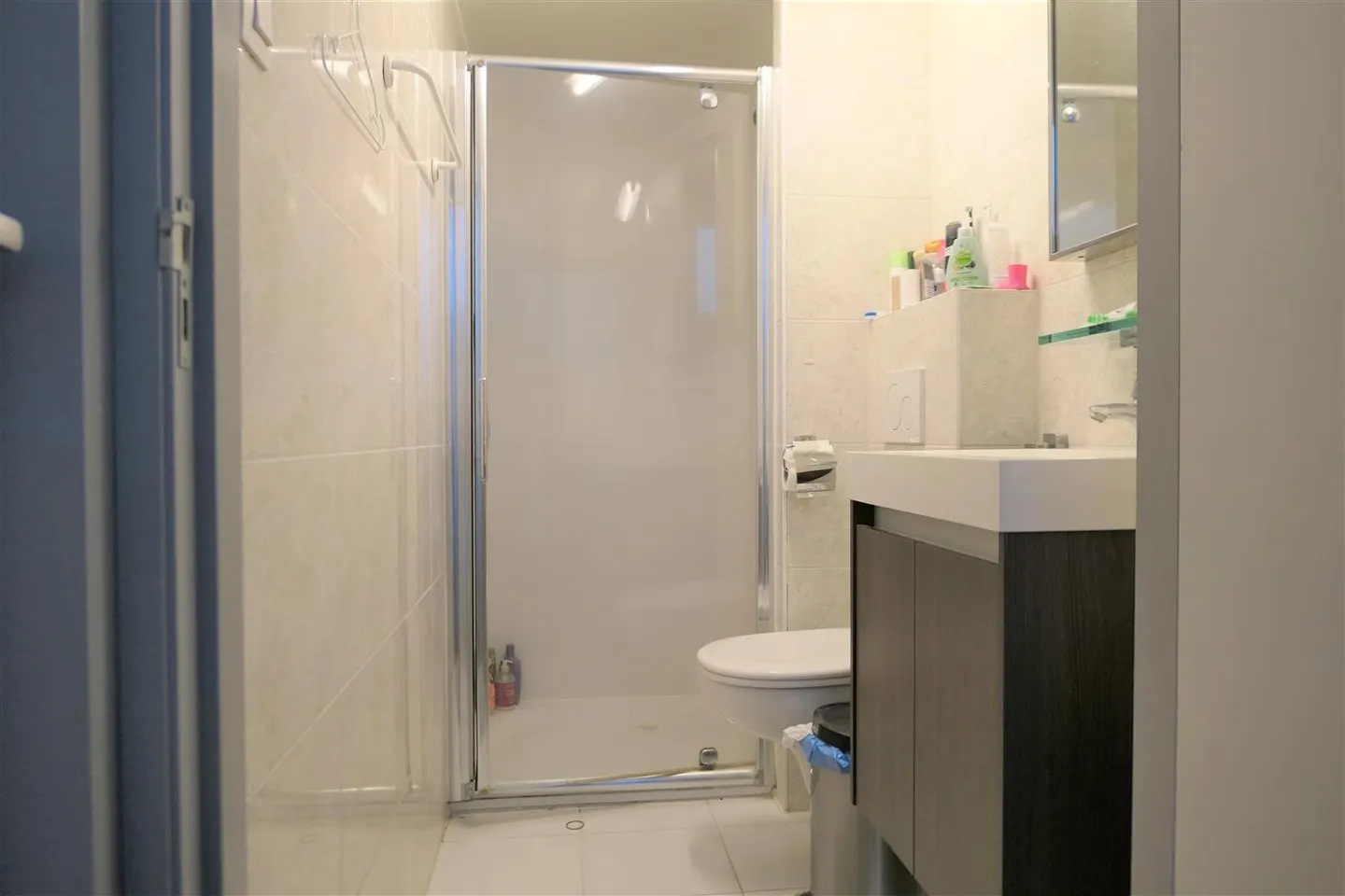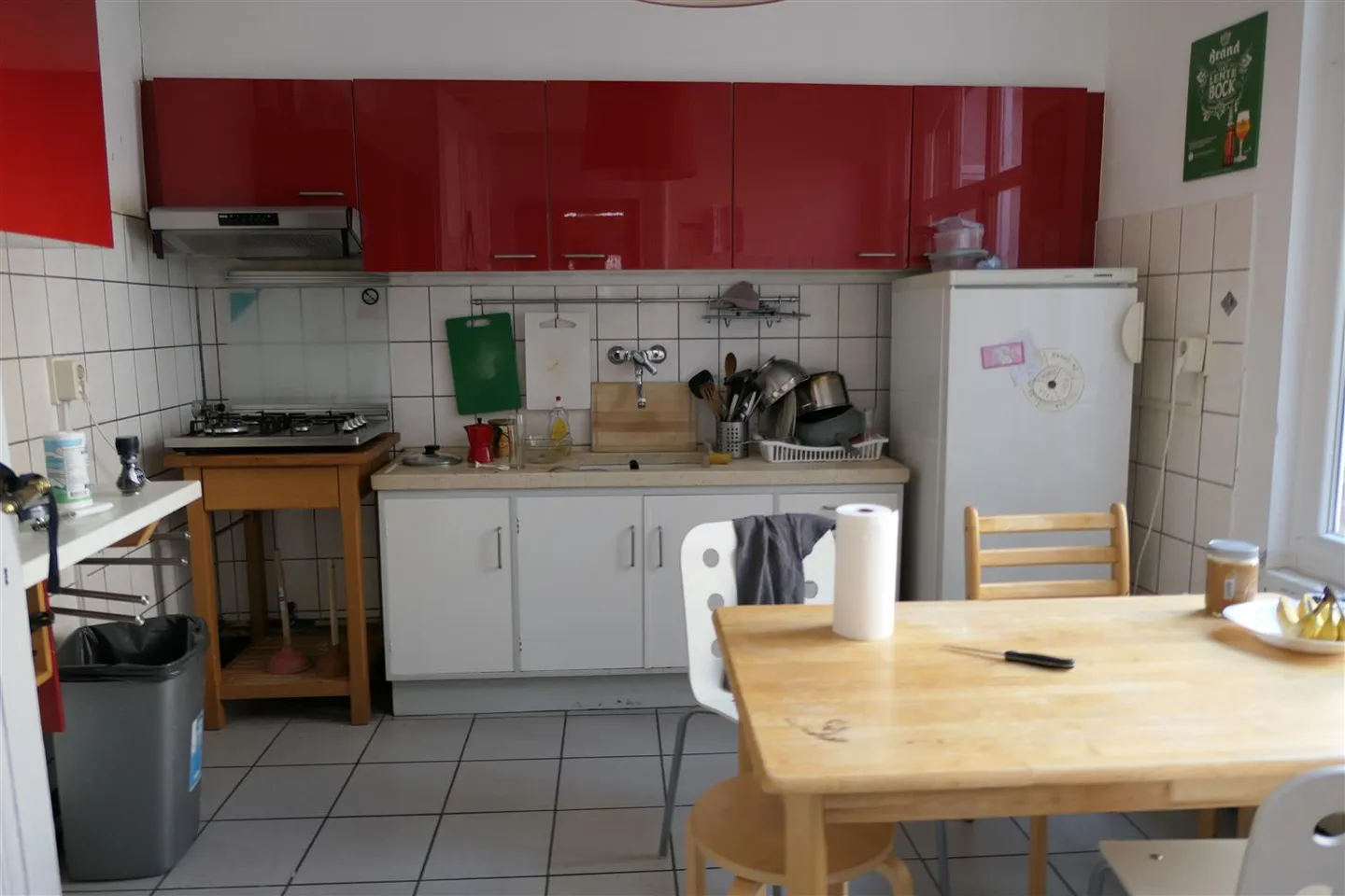 The kitchen and bathroom with shower, toilet and sink is shared with 4 fellow students..