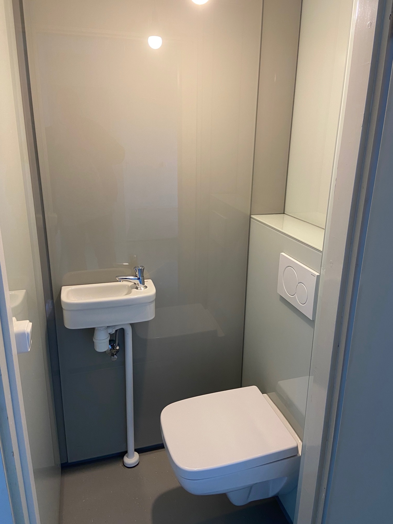 De badkamer en het toilet zijn voorzien van glazen wanden van vloer tot plafond. De douche is voorzien van een thermostatische douchekraan. In de toiletruimte is een hangend toilet geplaatst. De woning heeft geen gasaansluiting, u ontvangt dus geen gasrekening meer.