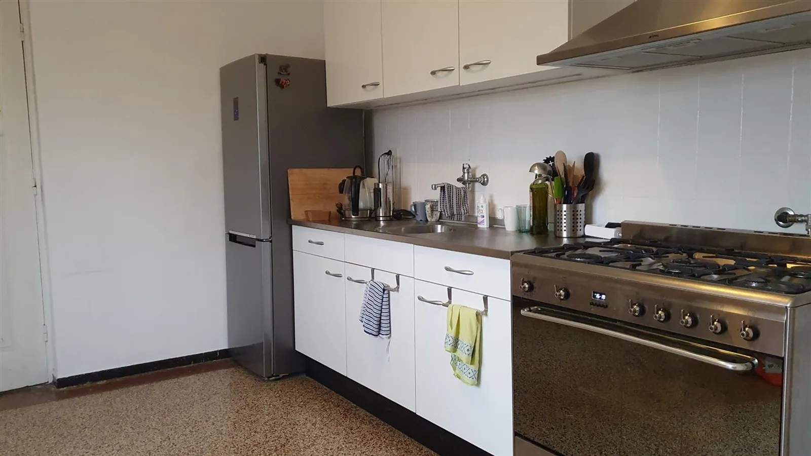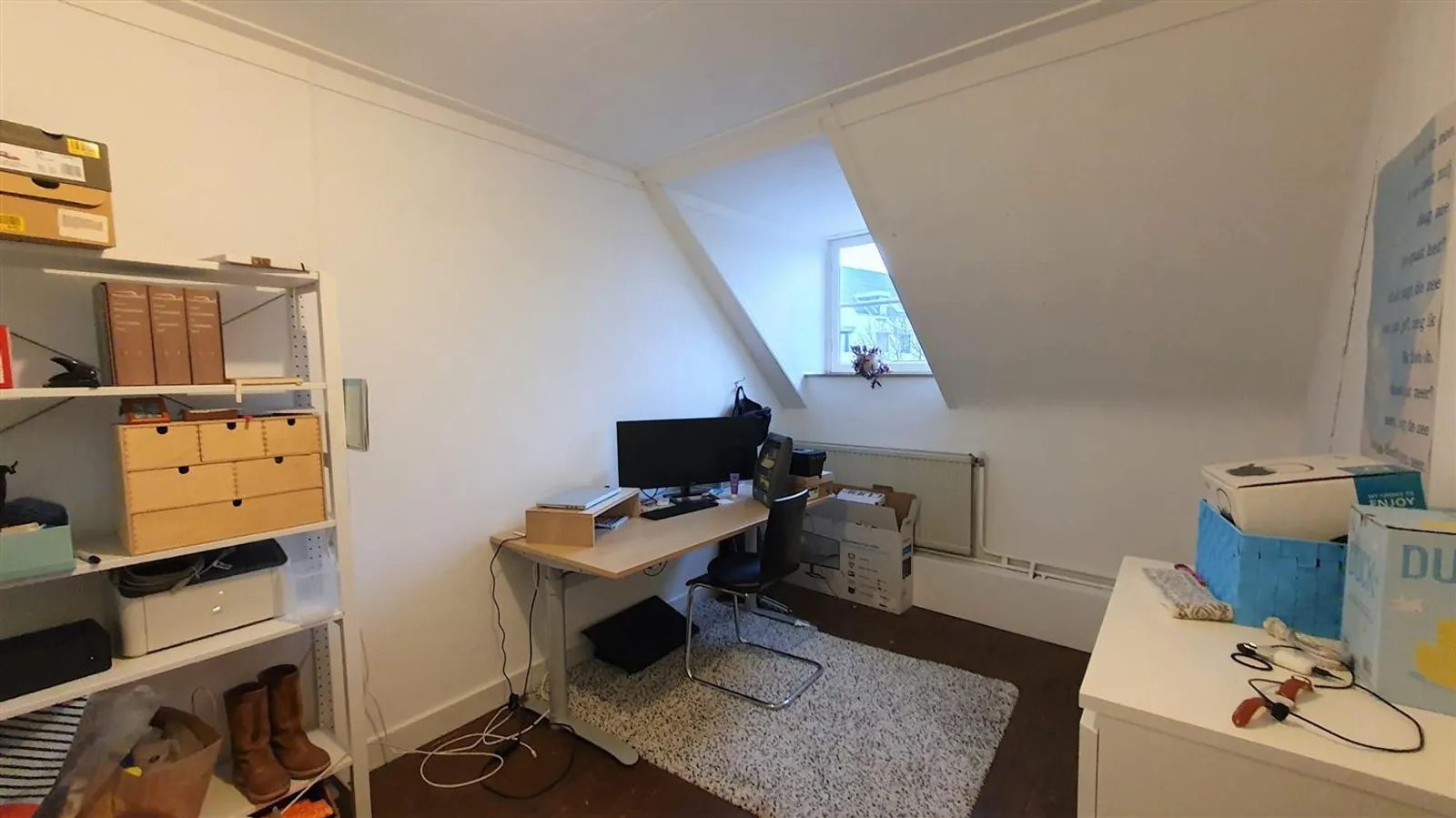 Located just a stone's throw from the Groene Loper and Central Station. The property consists of a spacious entrance and on the first floor a bright through living/dining room with 'en suite' doors, kitchen, separate toilet, and bathroom with shower cabin, sink, and laundry connection. On the second floor, there are two bedrooms (15 and 11m²), a study room, and access to the roof terrace with expansive views situated to the southwest.