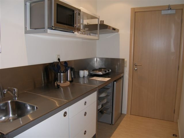 Entree in keuken . magnetron, kookplaat . Woon /slaapkamer . dubbele boxspringbedden, tafel twee stoelen, flatscreen etc etc.