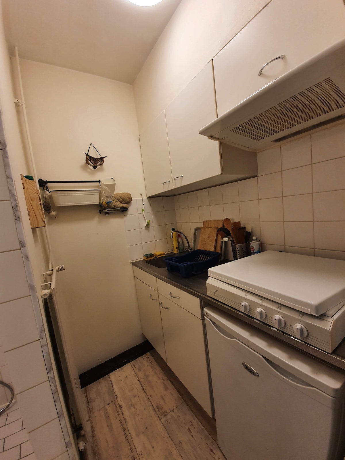 Deze semi-zelfstandige studio bevindt zich op de 1e verdieping, in een kleinschalig complex. Bij binnenkomst tref je het woongedeelte met direct links de semi-open keuken. De keuken is voorzien van een 4-pitsgaskookplaat, koeler (zonder vriesvak) en wasemkap. Daarnaast biedt de keuken voldoende opbergruimte.