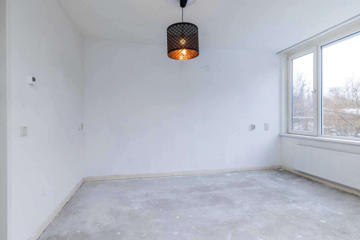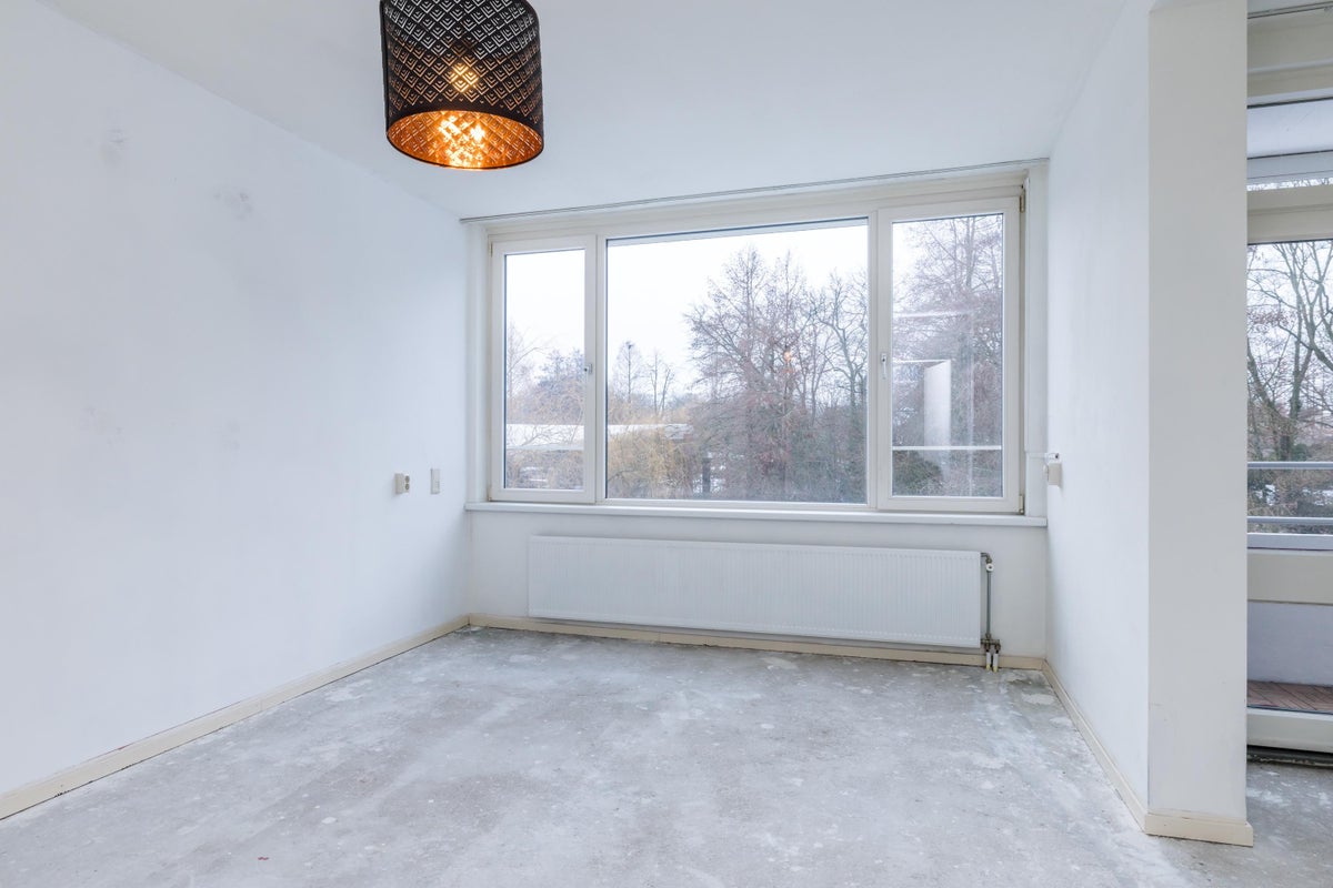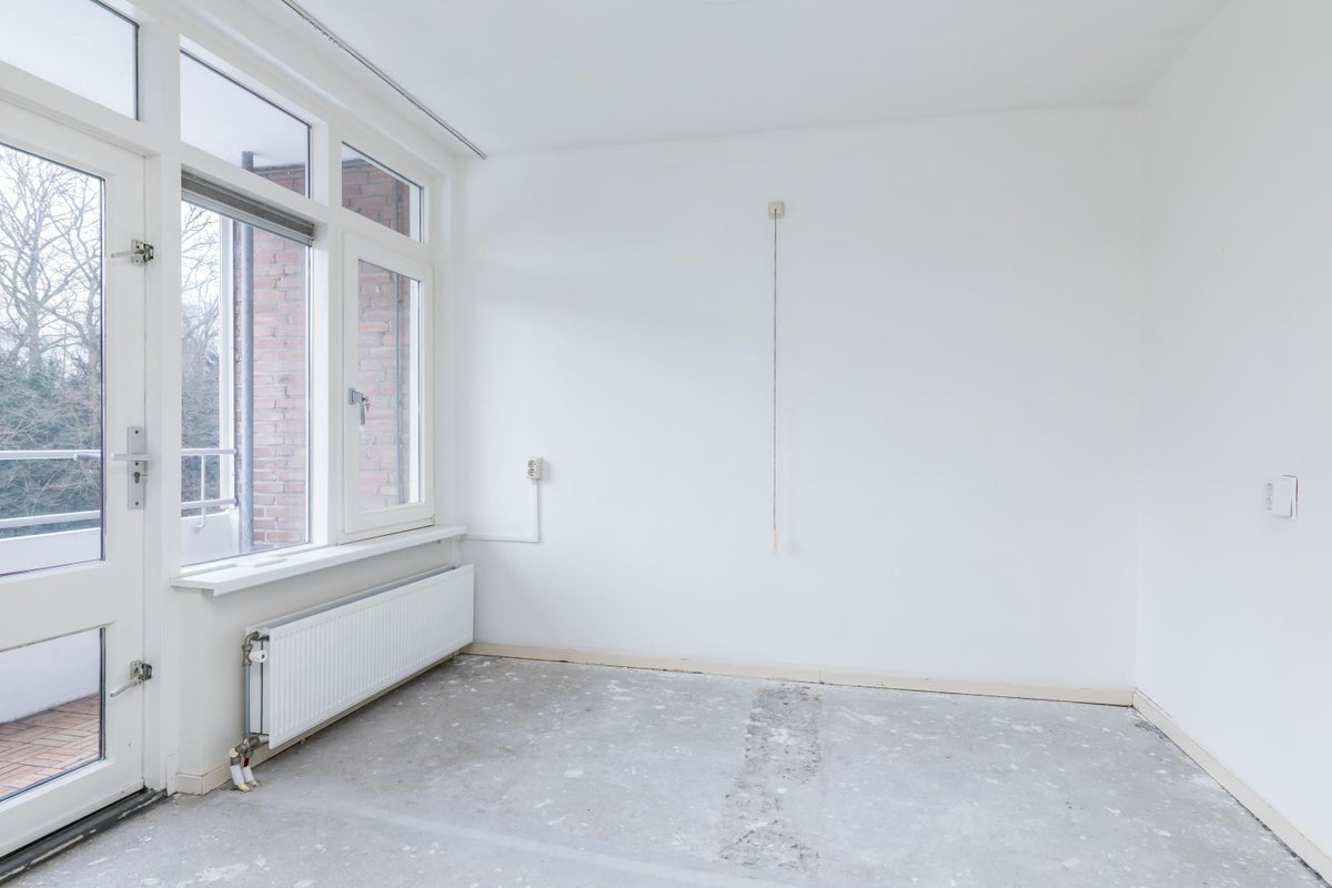 Woon- slaapkamer voorzien van zonwering en met toegang tot balkon