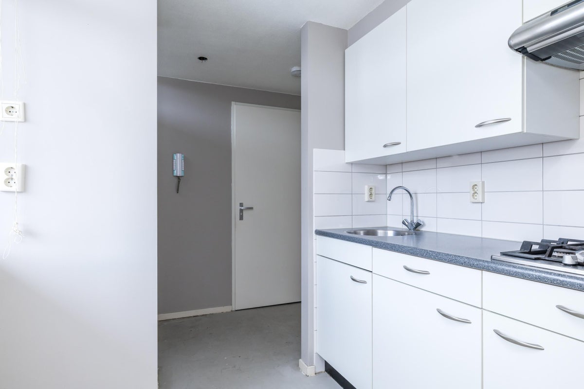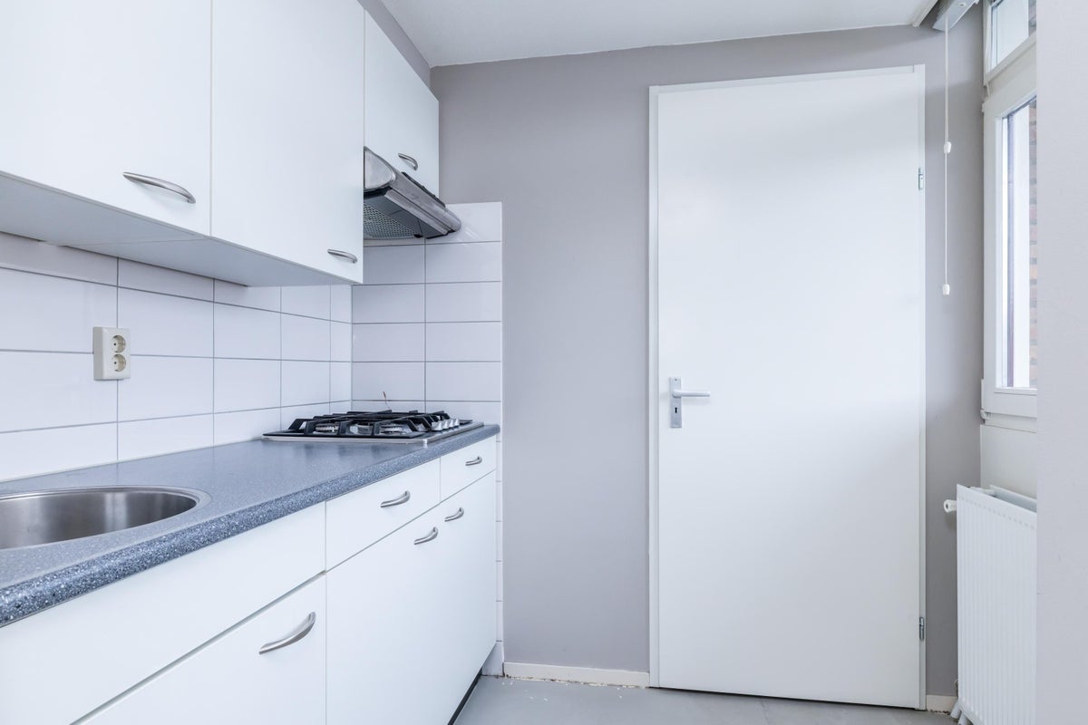 Keuken voorzien van gaskookplaat en afzuigkap en toegang tot cv- / wasruimte met aansluiting wasapparatuur