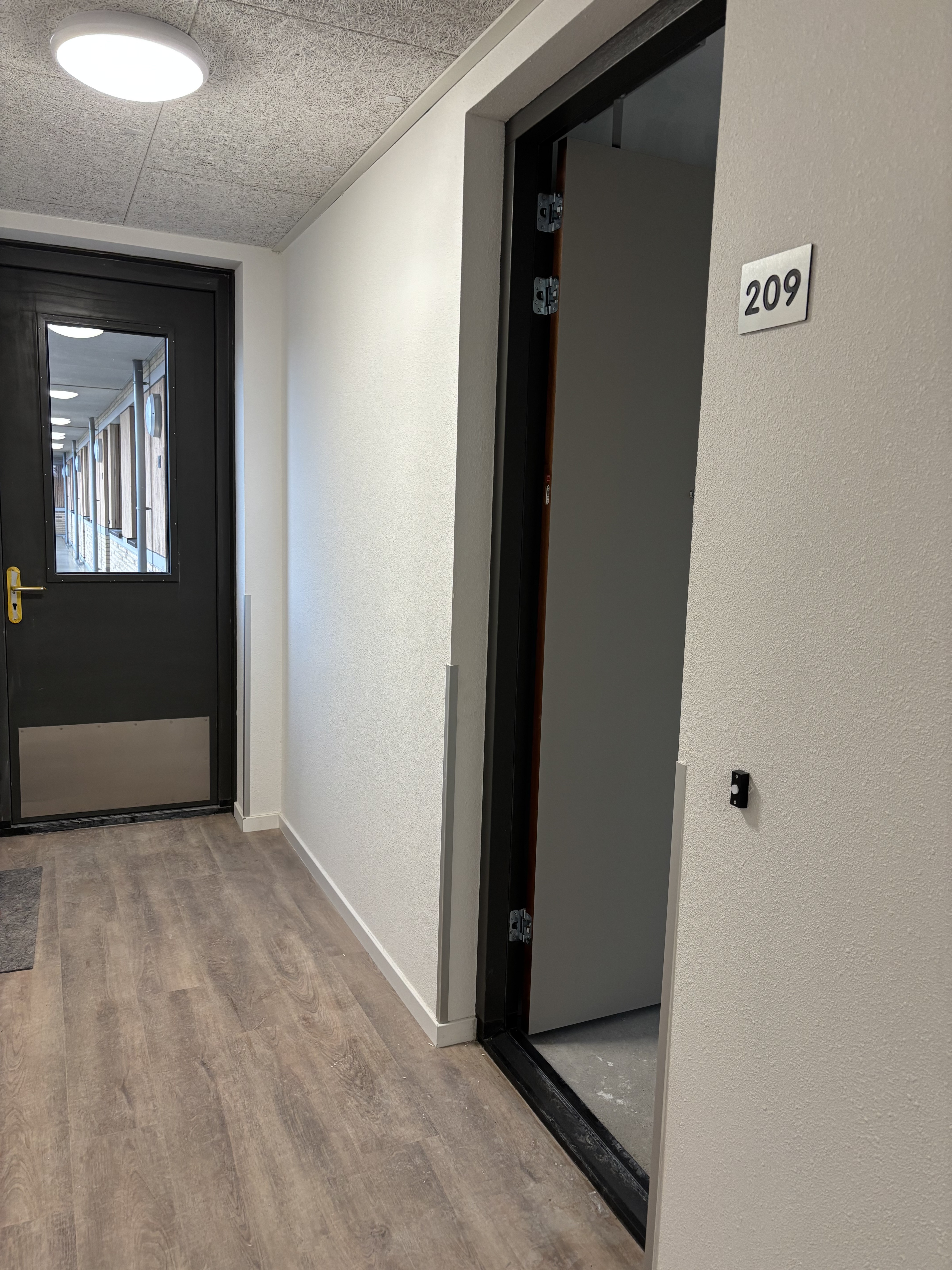 Hierdoor kunt u zien en horen wie er beneden voor de deur staat. Indeling De woon-slaapkamer met open keuken heeft een totale oppervlakte van 22 m2. Vanuit deze kamer heeft u toegang tot een ruim balkon van 6 m2. In de inpandige berging van 4 m2 heeft u een aansluiting voor de wasmachine. Op de begane grond kunt u gebruik maken van de gemeenschappelijke fietsenstalling.