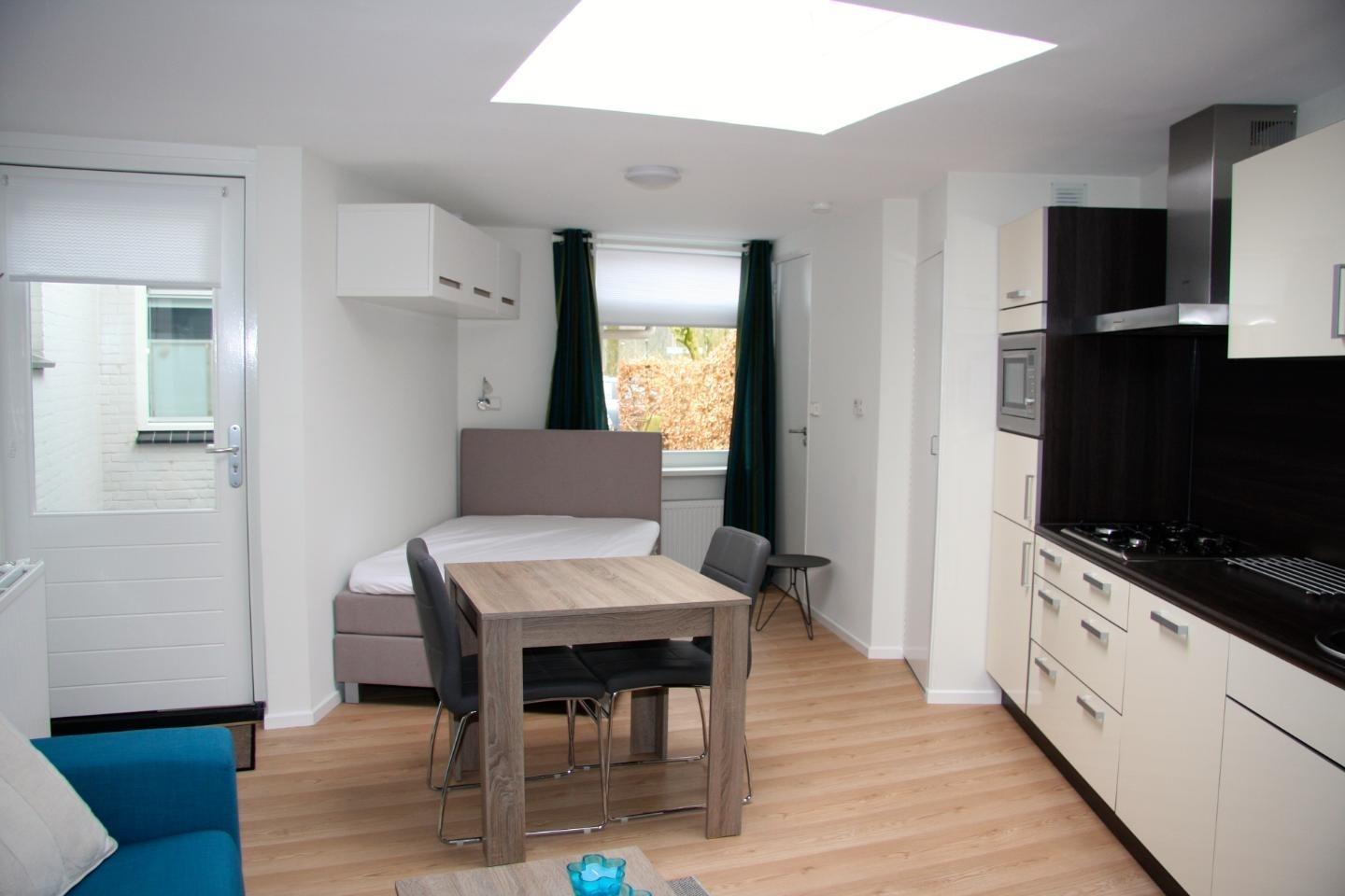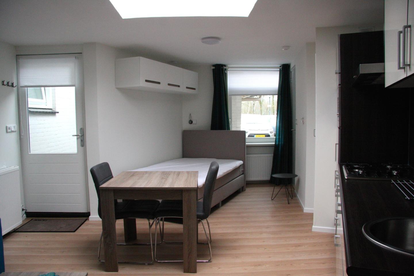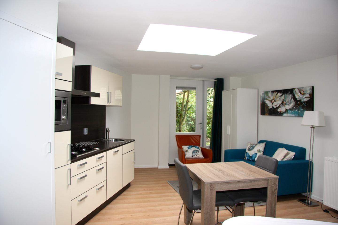 Te huur een volledig gemeubileerde studio met eigen ingang en zonnig tuintje met terras.