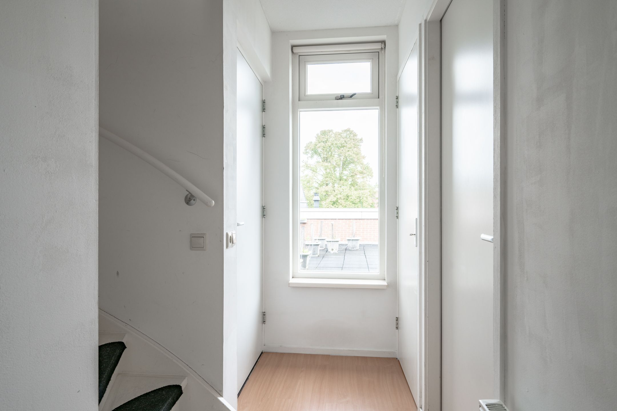 Centrale entree met toegang tot de bergingen en het trappenhuis.