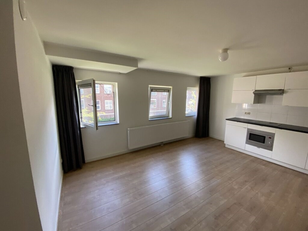 Arubastraat 18b bevindt zich op de eerste en tweede verdieping en heeft een woonoppervlak van 25m2. De woonkamer beschikt over een open keuken, welke is voorzien van een koelkast, inductiekookplaat, combi-oven/magnetron en afzuigkap. De badkamer is voorzien van een douche, toilet en wastafel. Deze studio beschikt over een dakterras van 16,43m2.