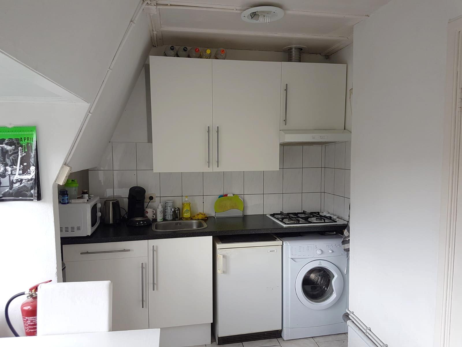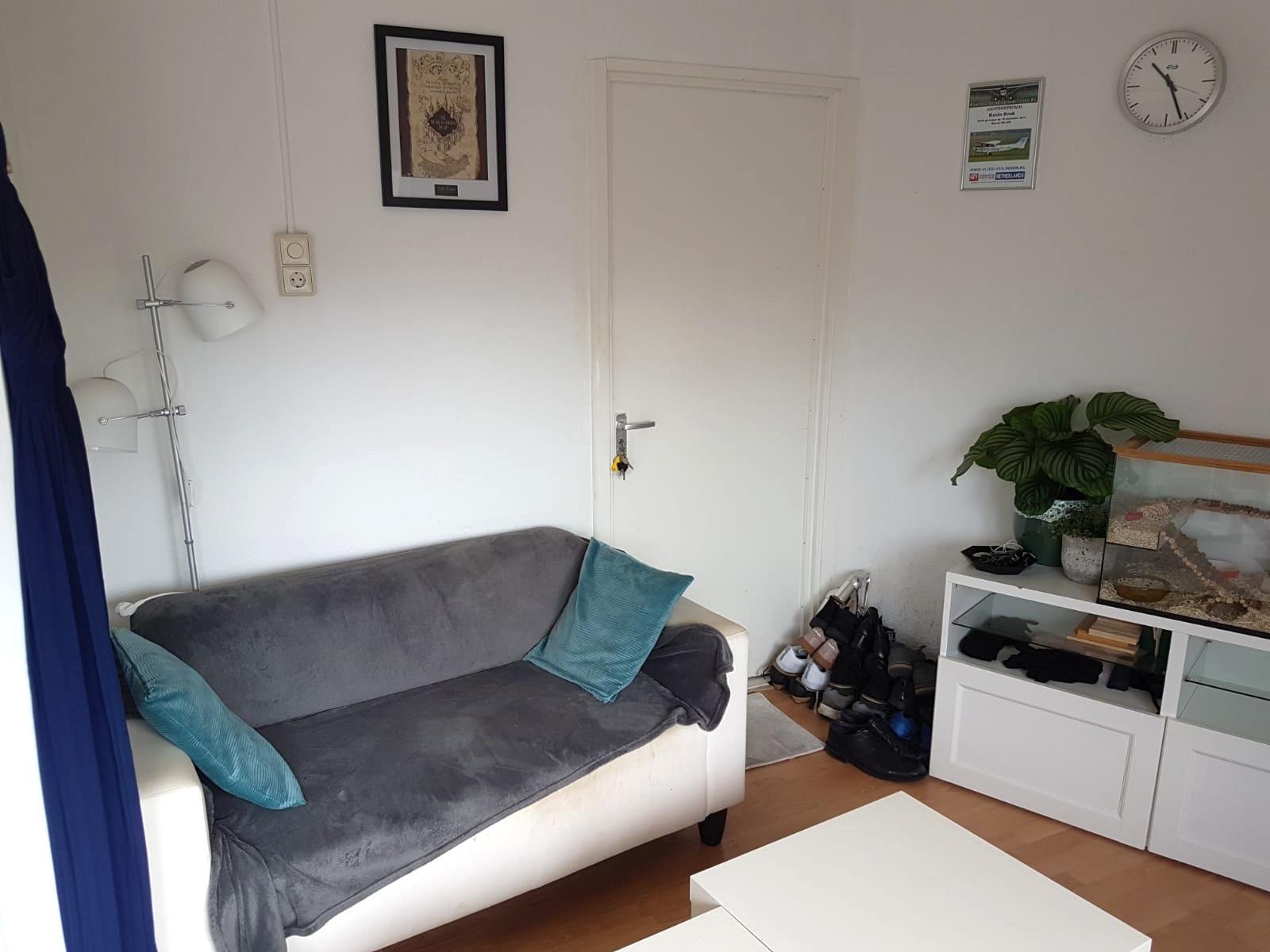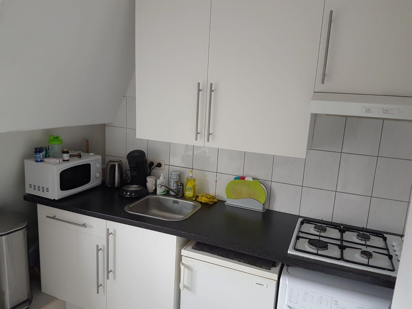 De woning is ongeveer 25m2 en kost €995,- per maand exclusief gas, water, elektra en internet.