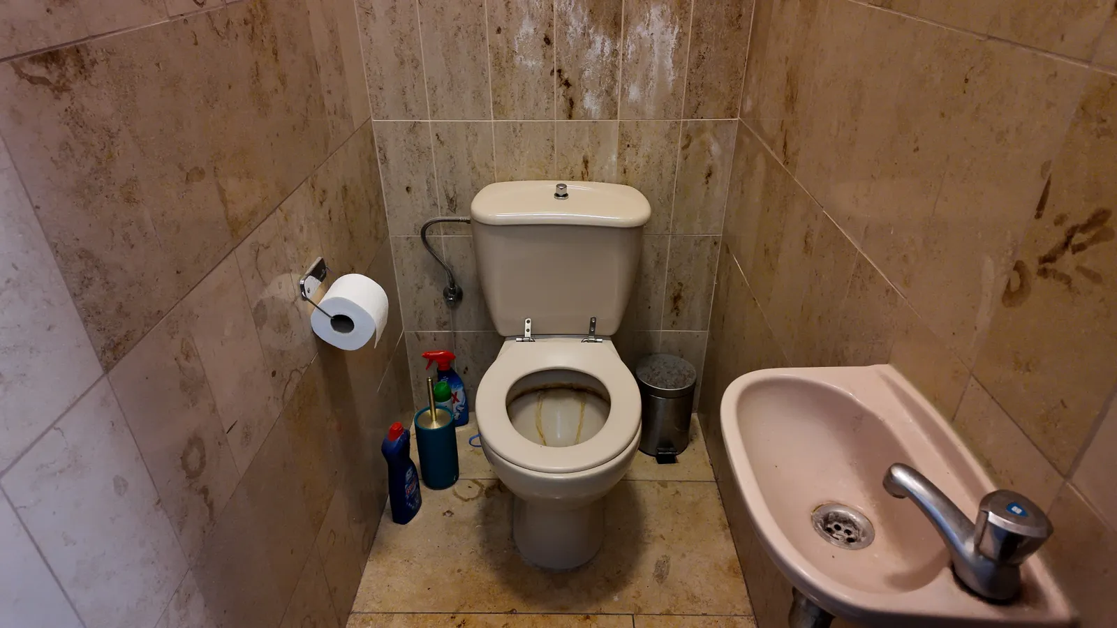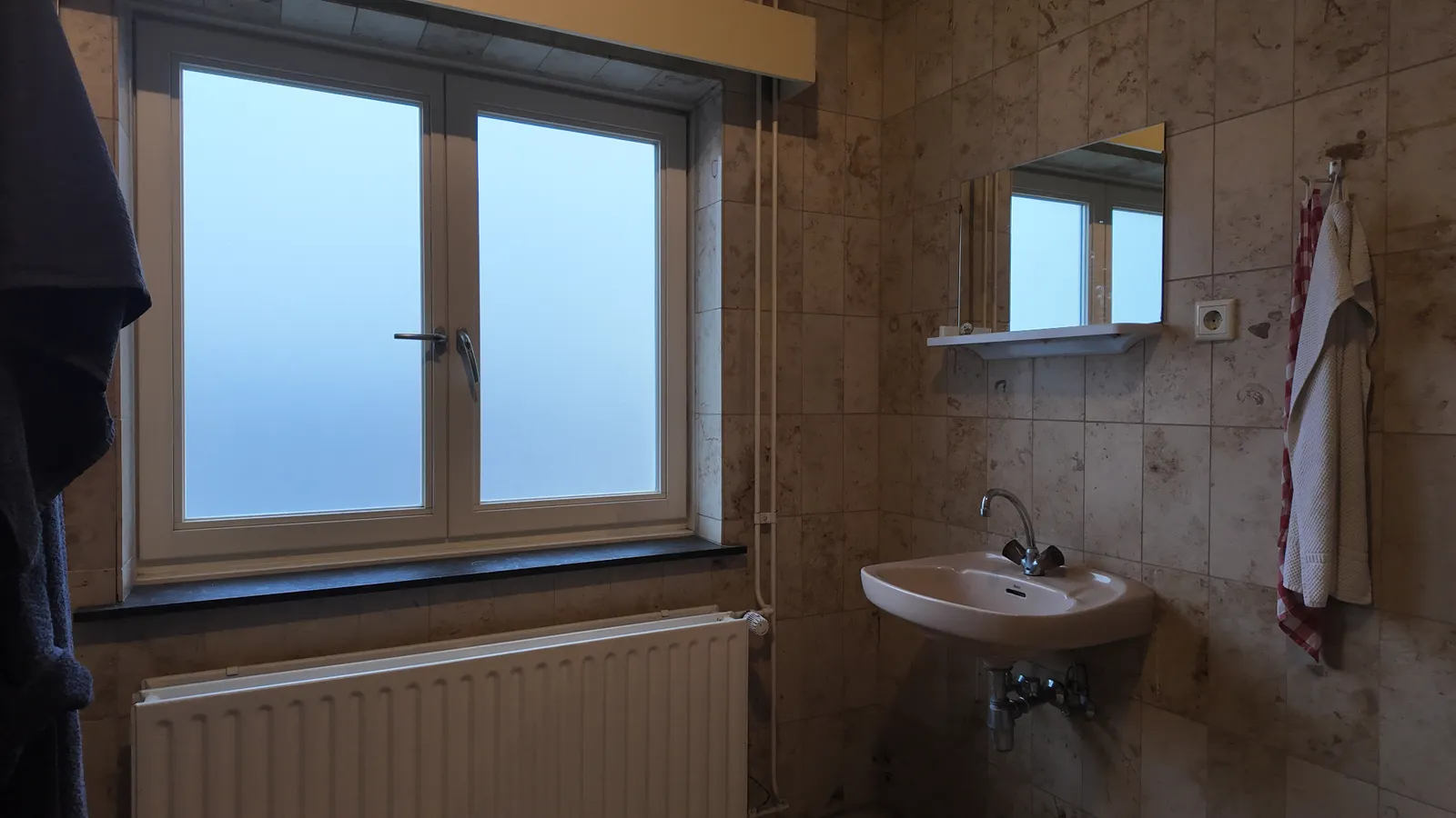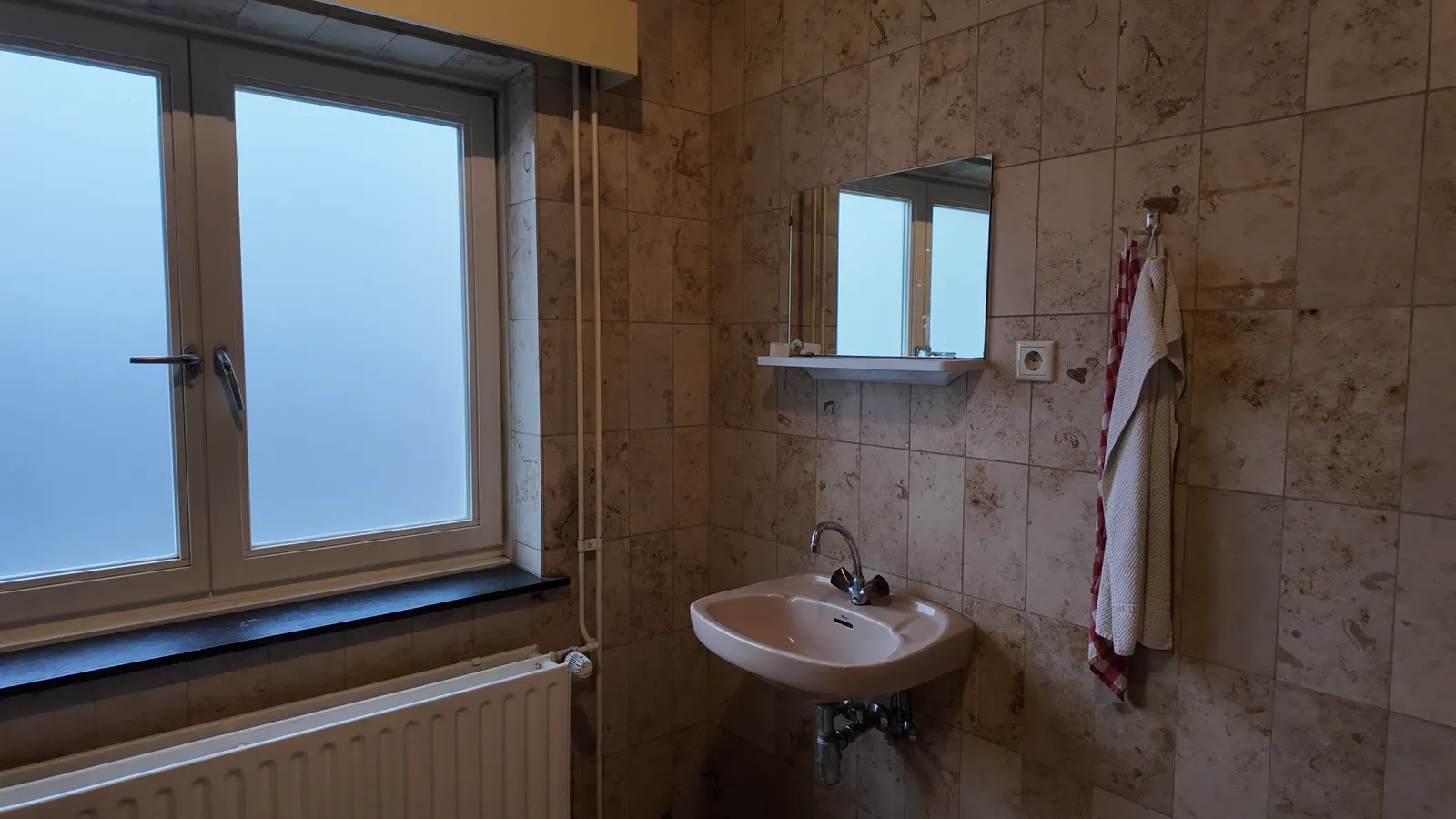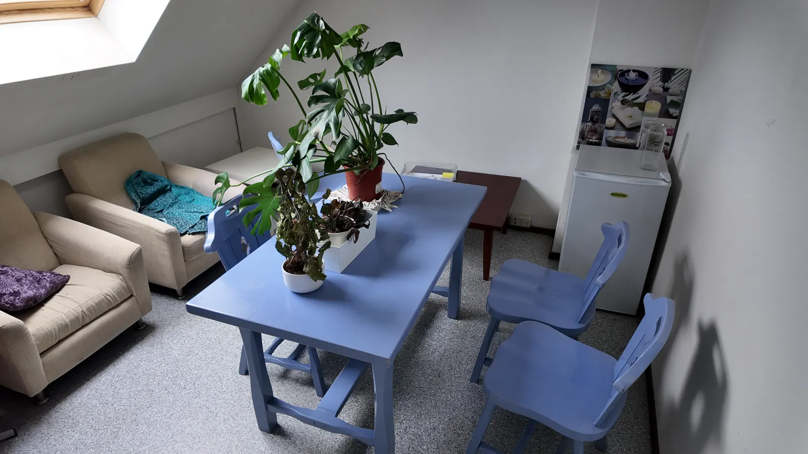 Room 2 with its own sink and balcony located on the second floor in front, with a shared kitchen, toilet, bathroom, and basement with laundry room.