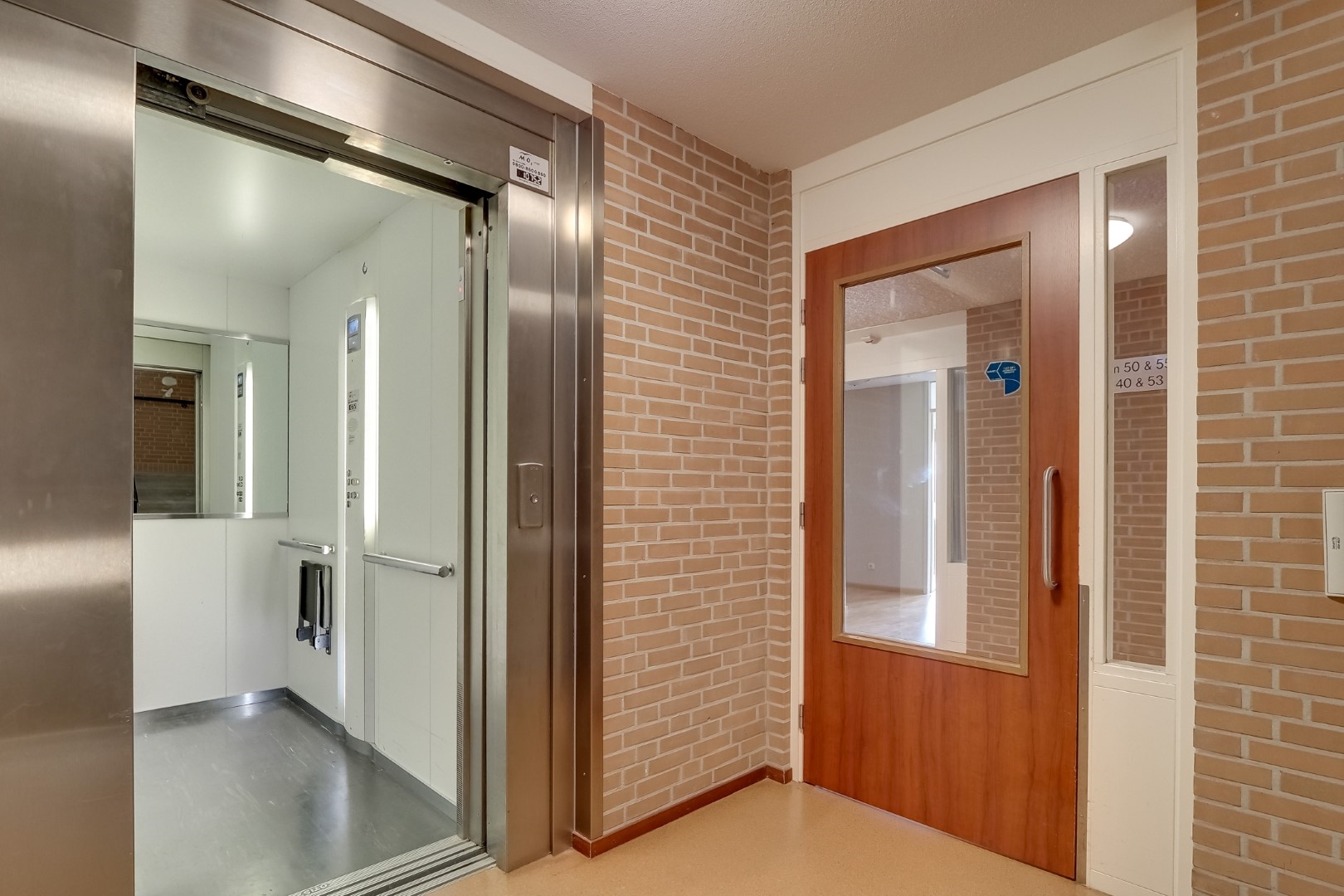 Gemeenschappelijke entree, bellentableau, brievenbussen en lift.