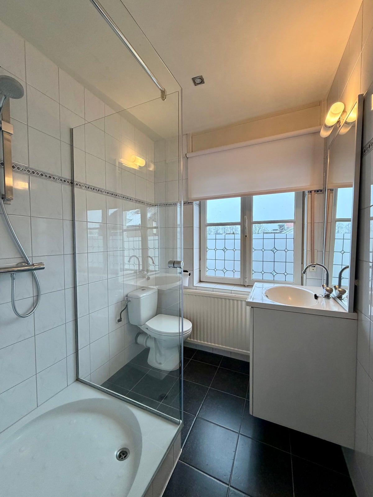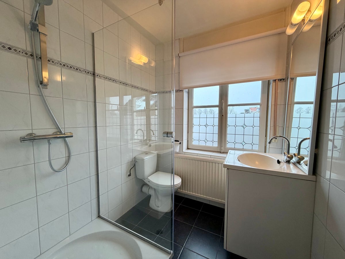 Nette badkamer met douche, toilet en wastafel met meubel. Op de tweede verdieping bevind zich de ruimte slaapkamer en extra bergzolder.