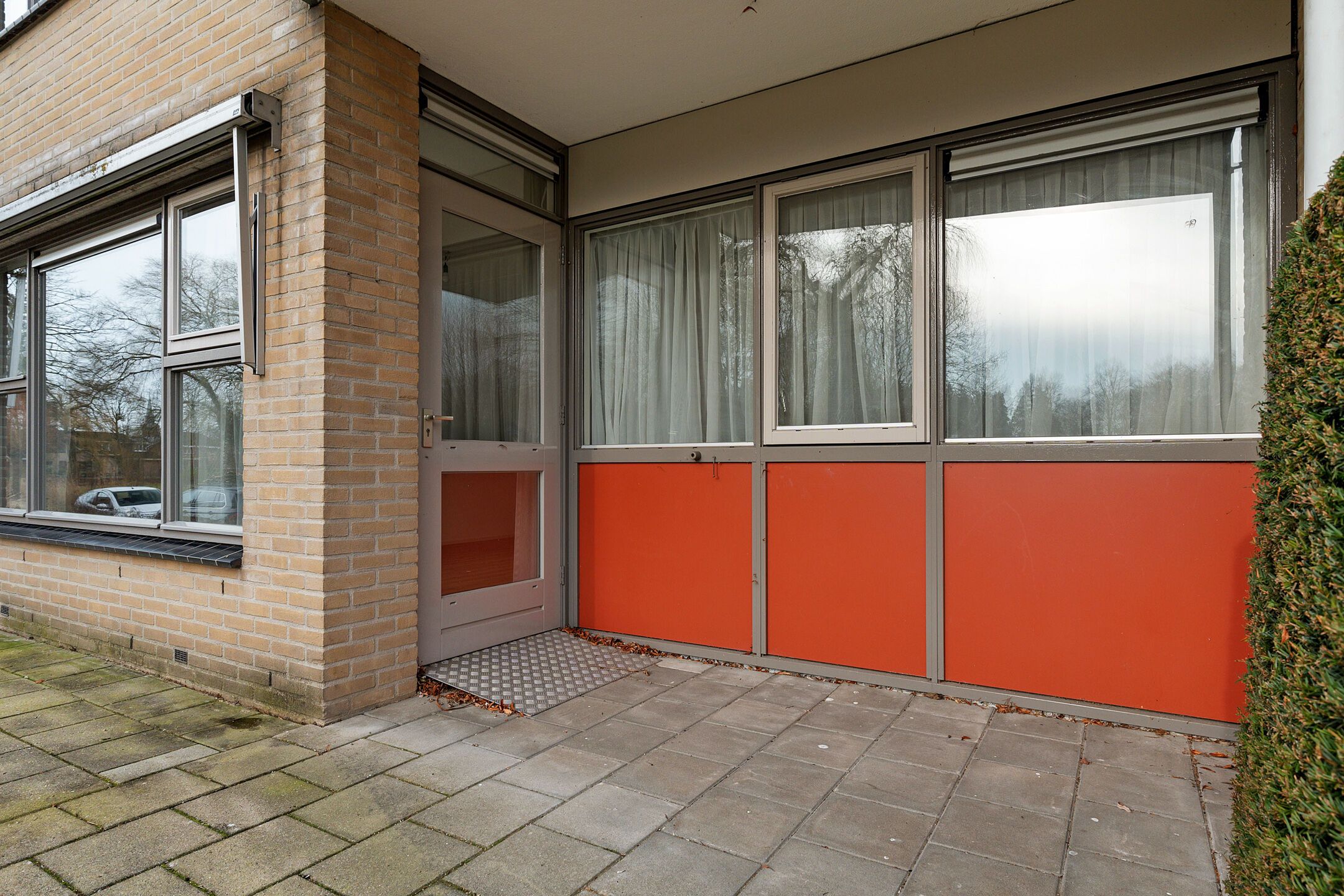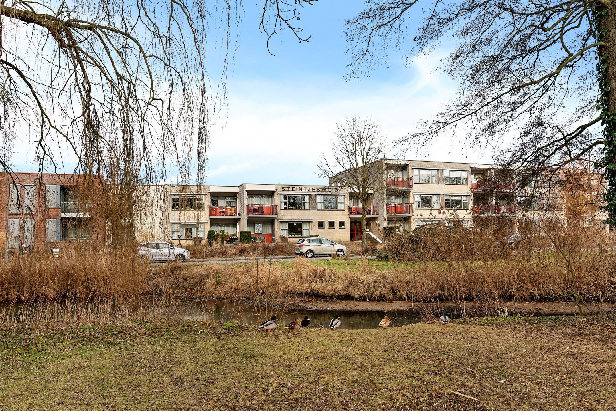 Dit appartement bevindt zich op de zuidkant van de begane grond en heeft zicht op een groene oase.
