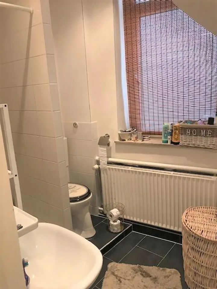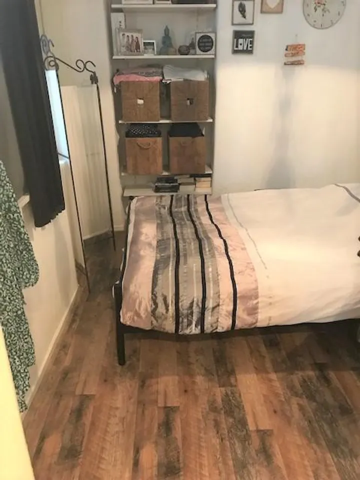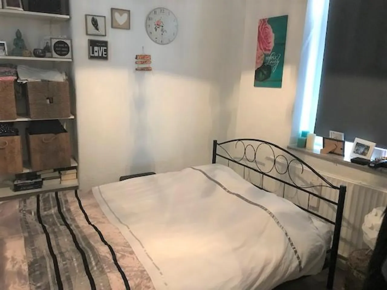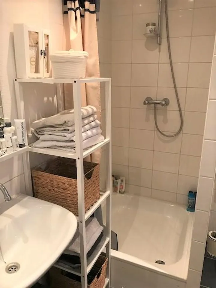 The apartment has a livingroom, kitchen, bedroom and a bathroom with shower, sink and toilet..