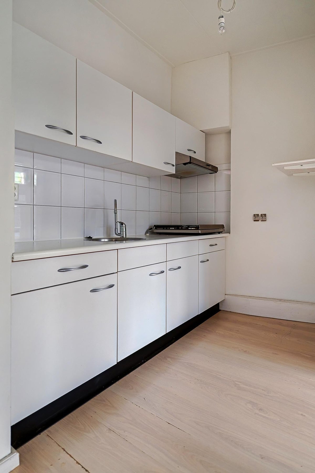 De deels open keuken voegt een eigentijds tintje toe aan de ruimte en nodigt uit tot culinaire avonturen. In de keuken zit geen apparatuur, uiteraard is hier wel de ruimte voor.