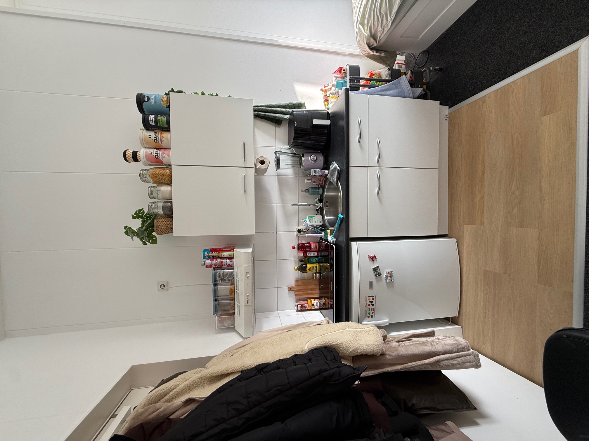De woonruimte is ca. 21m2 groot en voorzien van een eigen keuken. De douche en toilet deel je met 4 anderen. De huurprijs bedraagt €709,- exclusief g/w/e en gemeentelijke lasten.