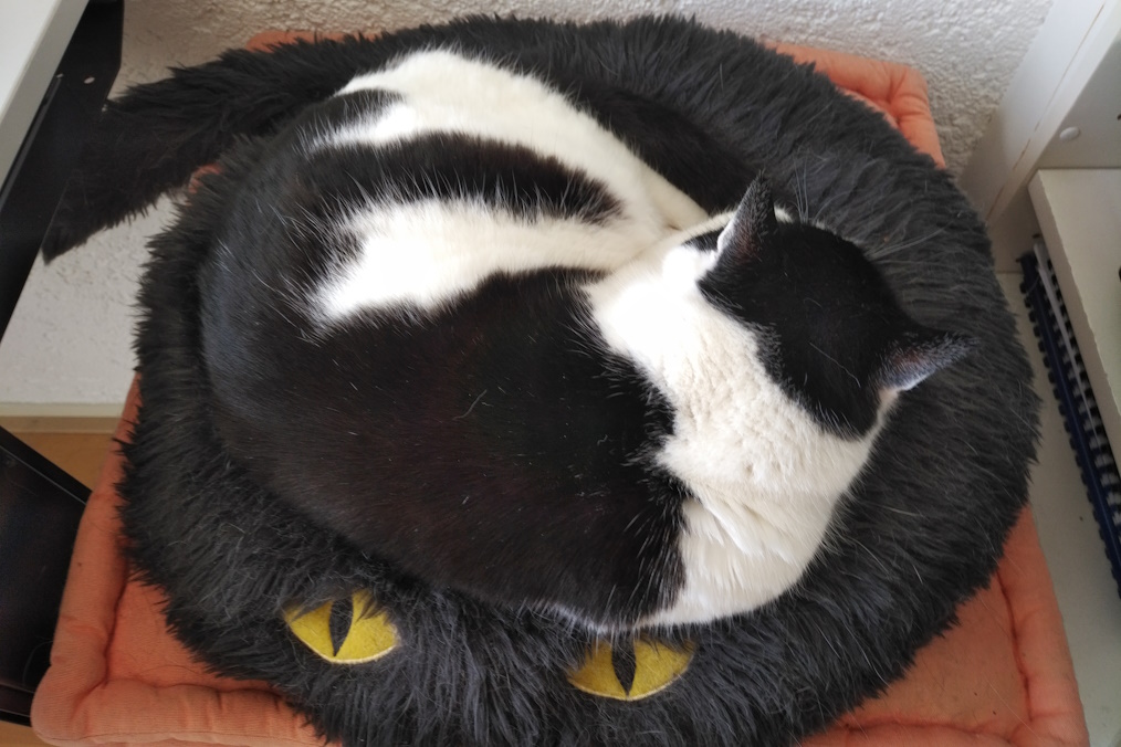 * We have a quiet and cute cuddly house cat.