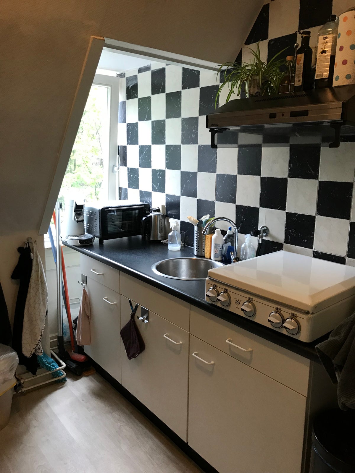Op deze verdieping bevinden zich de gezamenlijke keuken en badkamer, die worden gedeeld met twee andere bewoonsters.