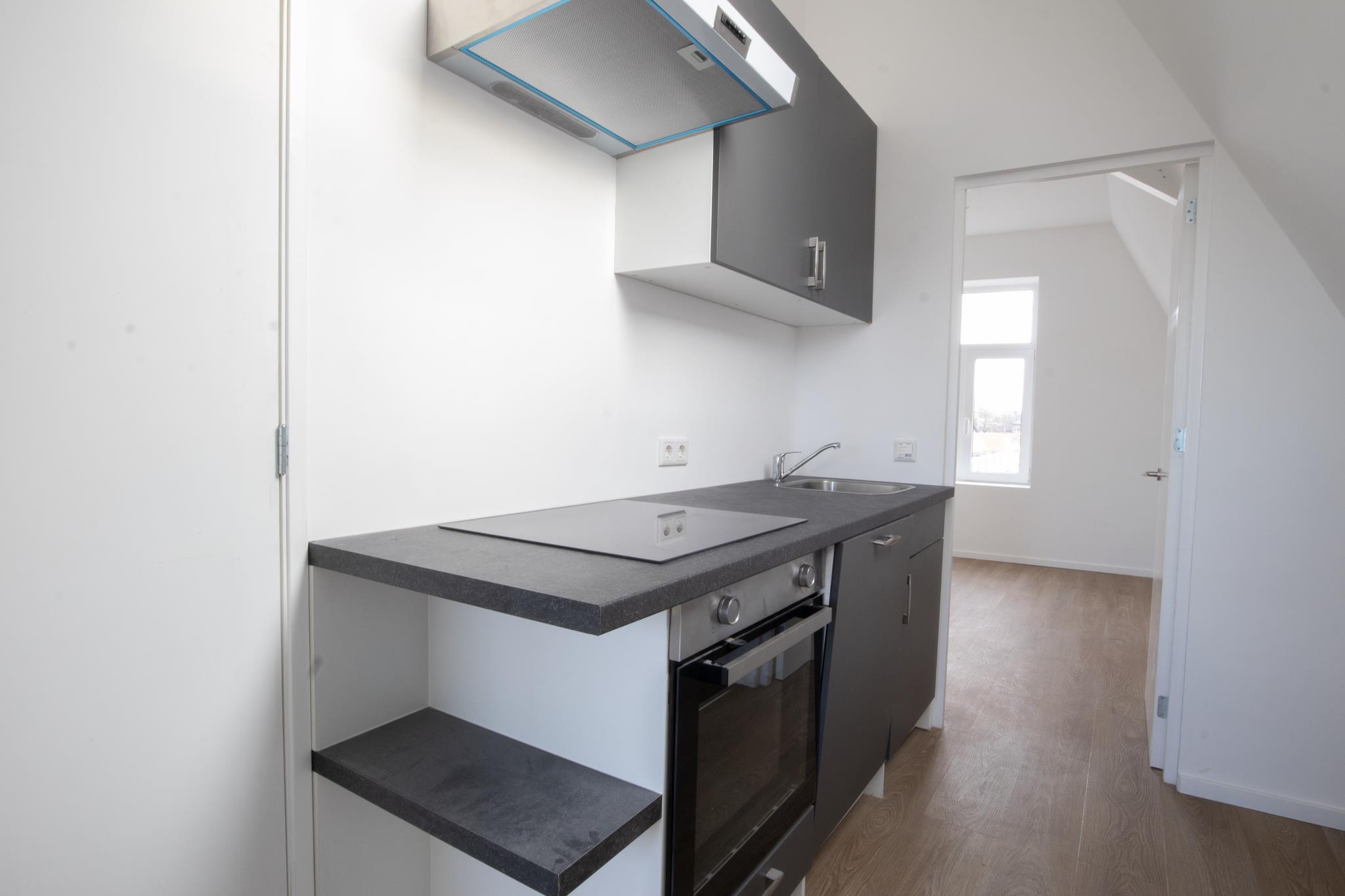 De kamer bestaat uit een woonkamerdeel van ca. 10 m² met een eigen keuken en een apart slaapgedeelte van ca. 9 m². Hierdoor heb je een duidelijke scheiding tussen wonen en slapen.