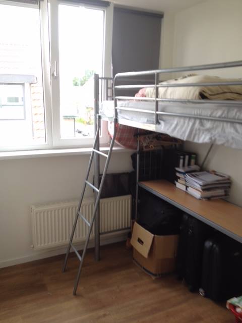 De kamer is ongeveer 9m2 en je deelt de woning met 4 andere studenten.