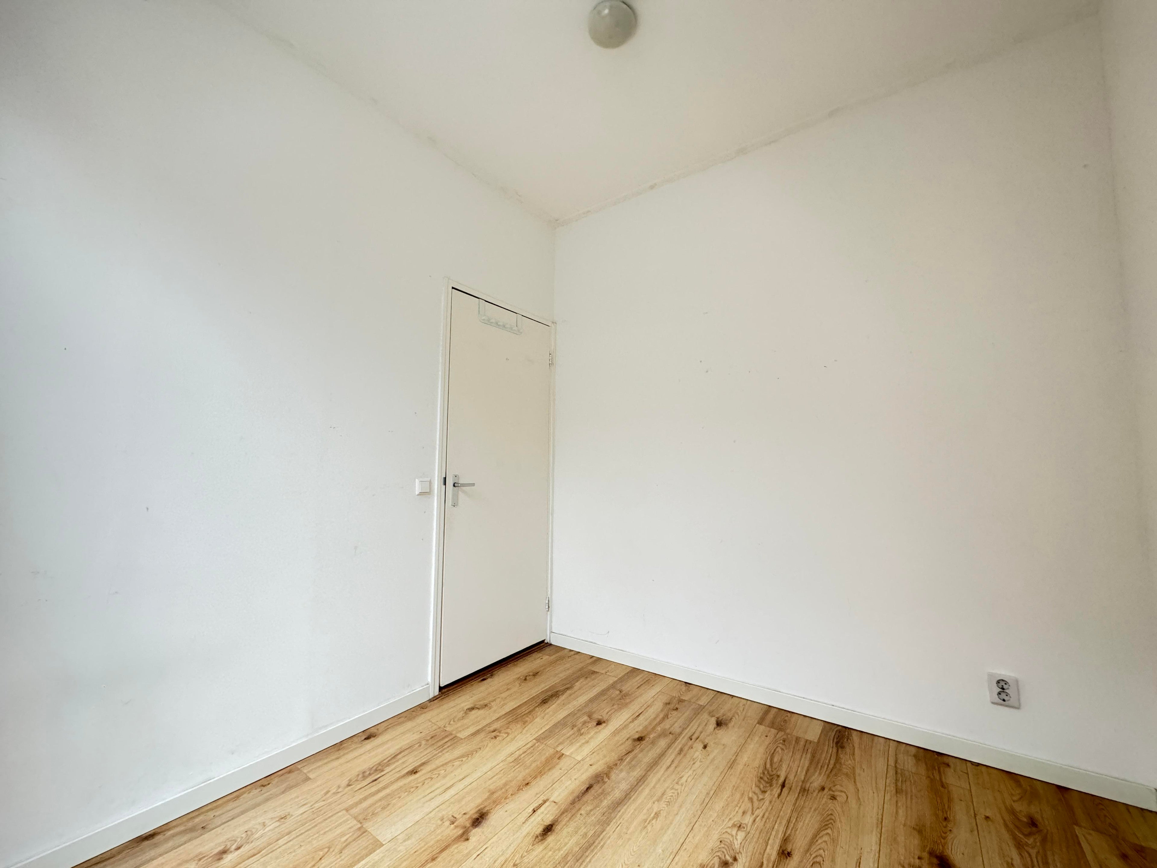 Aan de achterzijde van het appartement vind je de tweede slaapkamer, ook voorzien van een groot raam voor voldoende daglicht.