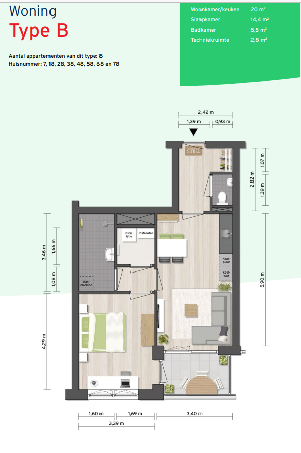 Beschikbare huisnummers, type B en type HVia deze verzameladvertentie reageer je op de appartementen met huisnummers 61 78. De appartementen worden toegewezen op basis van inschrijftijd.