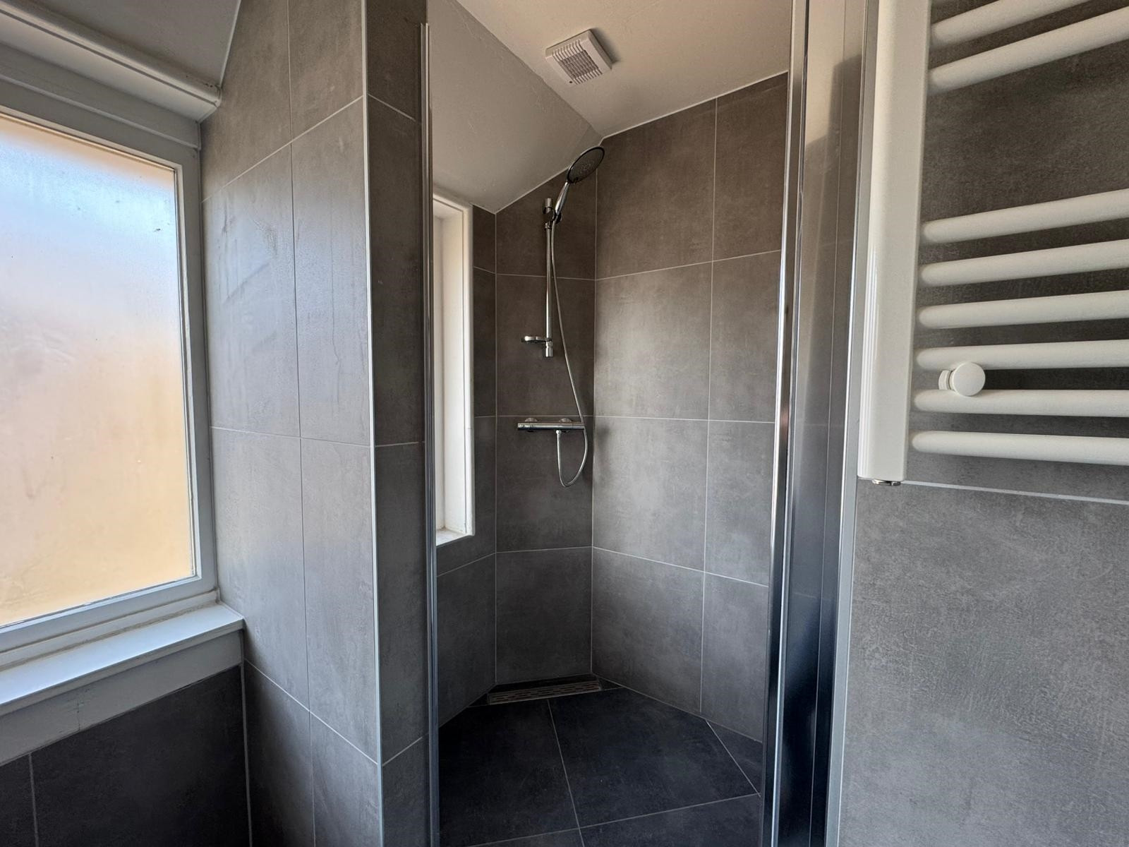 Alleen de zolderkamer wijkt hiervan af; deze kamer beschikt over een open keuken. Verder beschikt de woning over gezamenlijke sanitaire voorzieningen. Op de eerste verdieping bevindt zich een gemeenschappelijk toilet. De badkamer, gelegen op de tweede verdieping, is netjes afgewerkt en voorzien van een douche, een wastafel met bijbehorend meubel en een handdoekradiator.