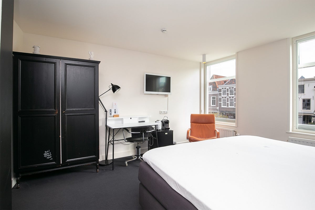 Op de tweede etage van een voormalig eco boutique hotel is deze kamer aan de voorzijde gelegen. De studio heeft uitzicht op de grachten en is volledig voorzien van luxe meubels met openslaande deuren naar de badkamer.