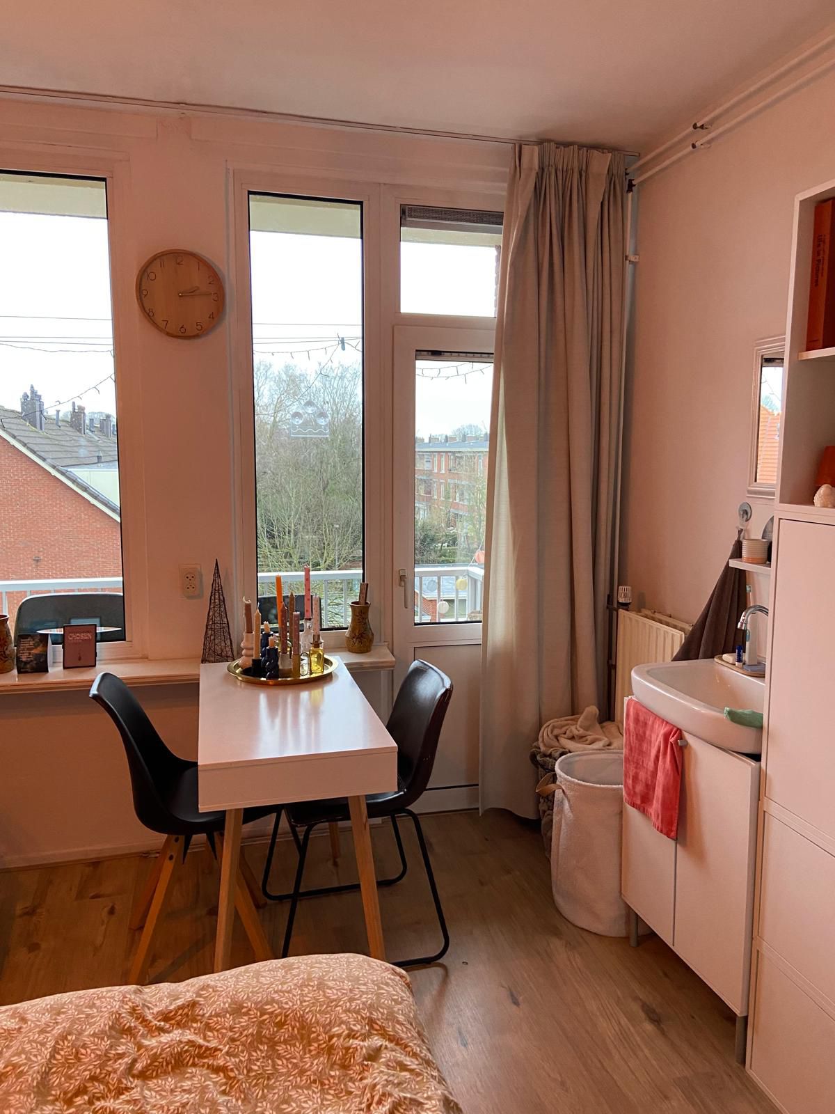 Deze mooie, ruime kamer heeft een oppervlakte van 13m2 en beschikt over een eigen wastafel in de kamer. De woonruimte is gelegen aan de achterzijde van de woning op de derde verdieping. Via de balkondeur is direct het balkon te bereiken. De ruimte is makkelijk in te delen en heeft veel lichtinval door de grote ramen.