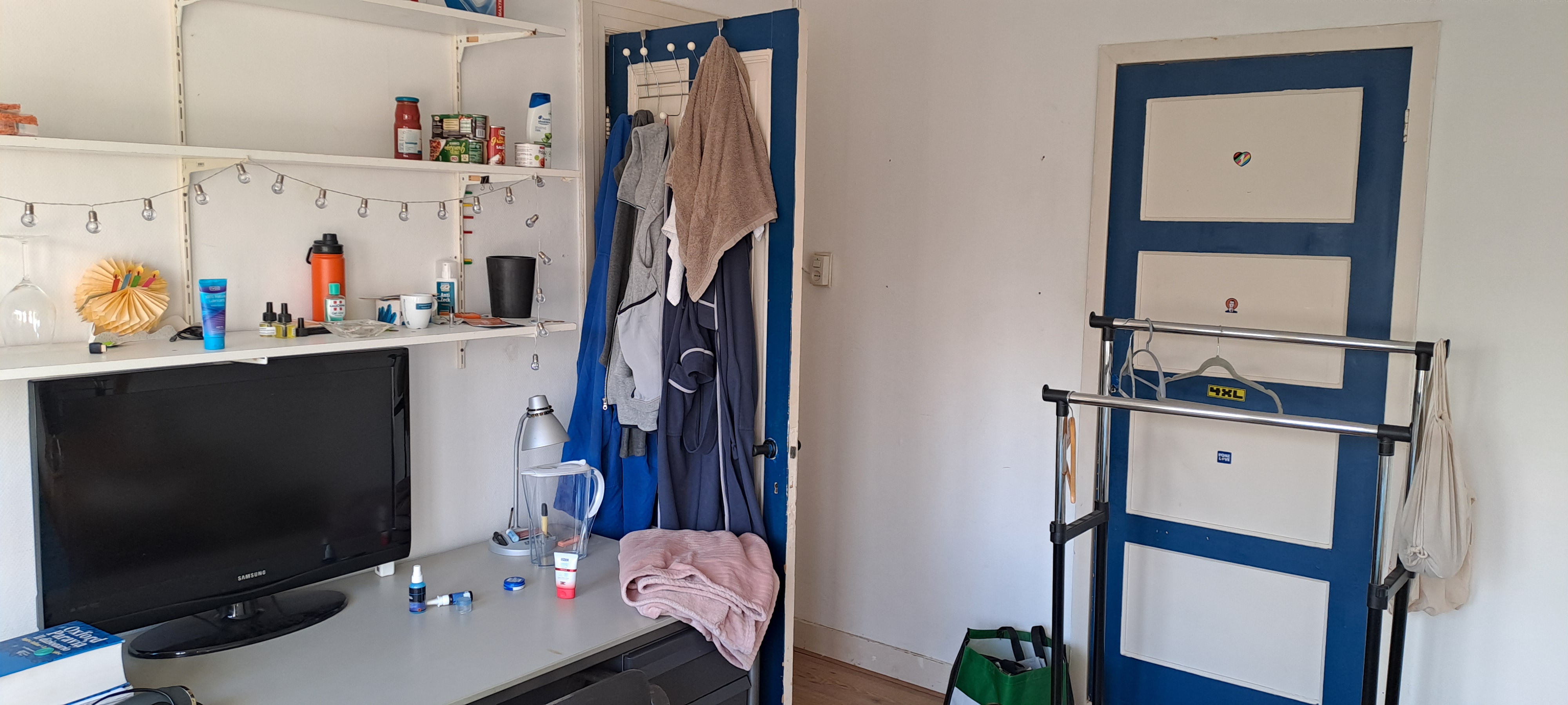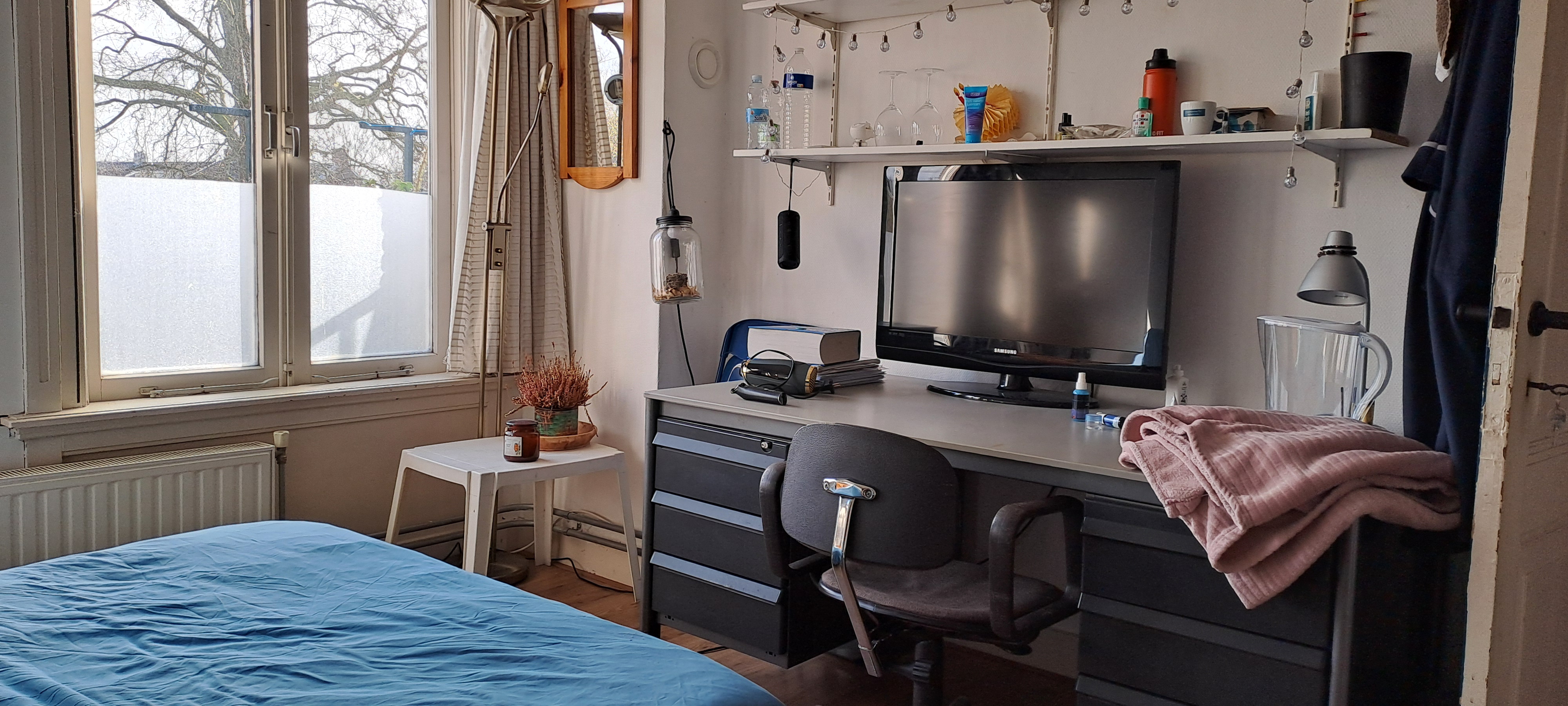 Grotere kamer te huur in bovenwoning(herenhuis) in het centrum van Wageningen met medegebruik van douche, toilet en keuken..