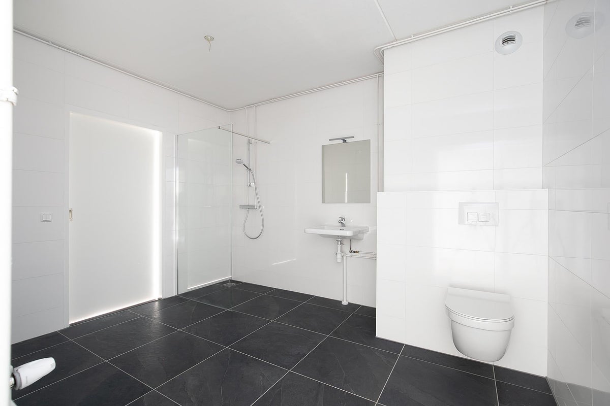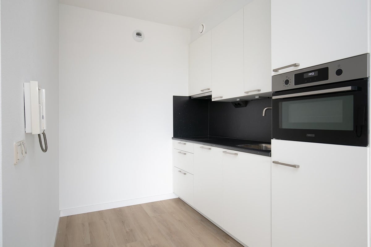 Dit appartement beschikt over 1 slaapkamer, ruime badkamer met wasmachineaansluiting, douche (geschikt voor rolstoelen), toilet en wasbak. De keuken is voorzien van ijskast, afwasmachine, inductie kookplaat, afzuigkap en voldoende kastruimte.